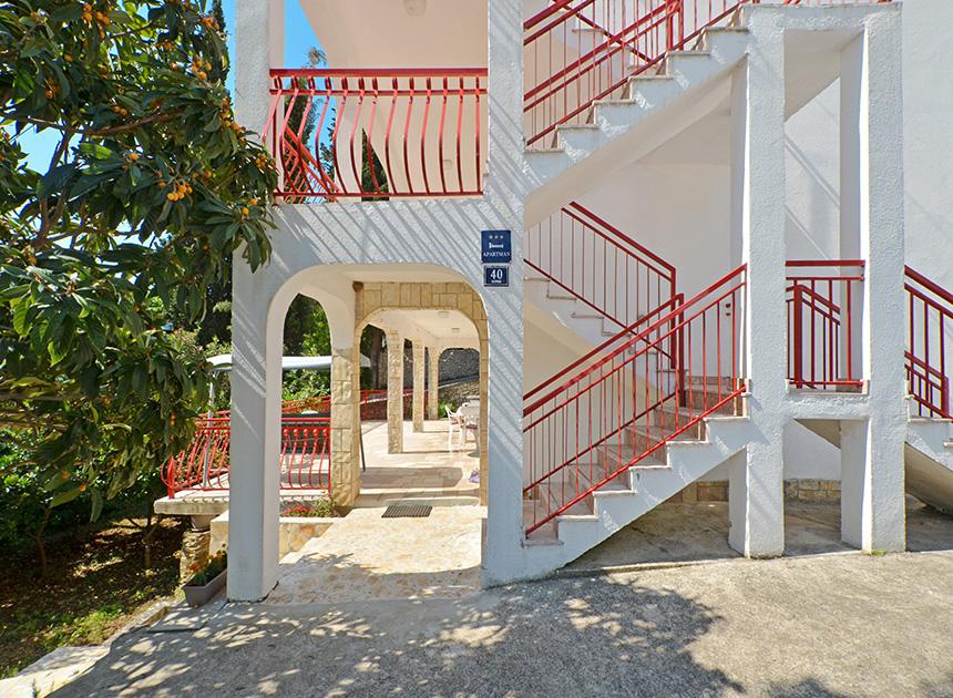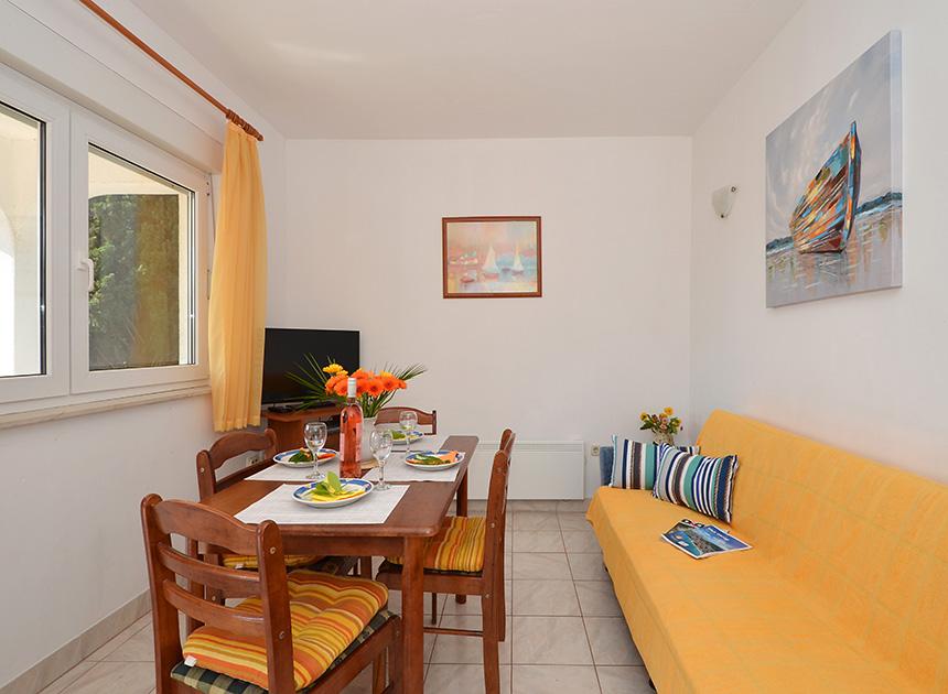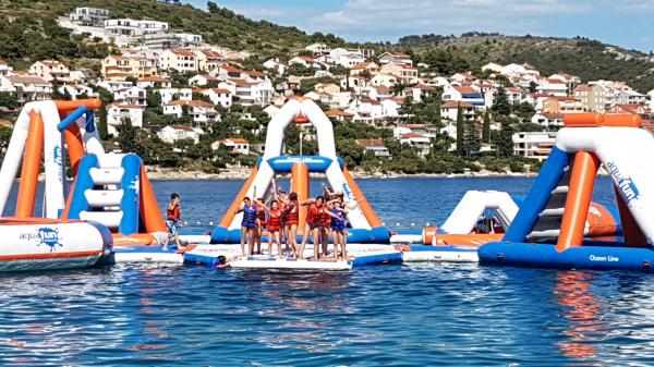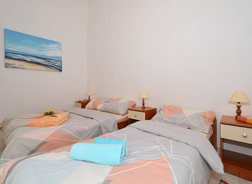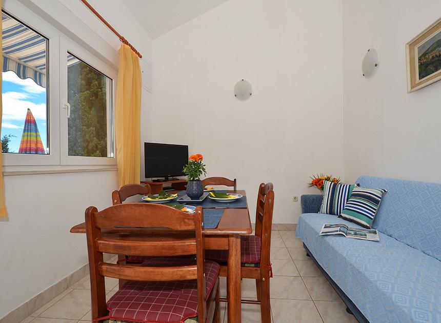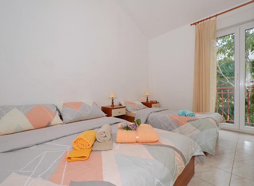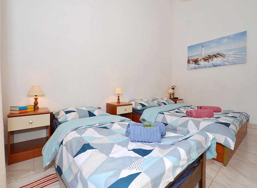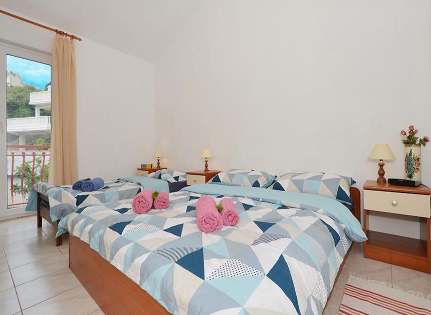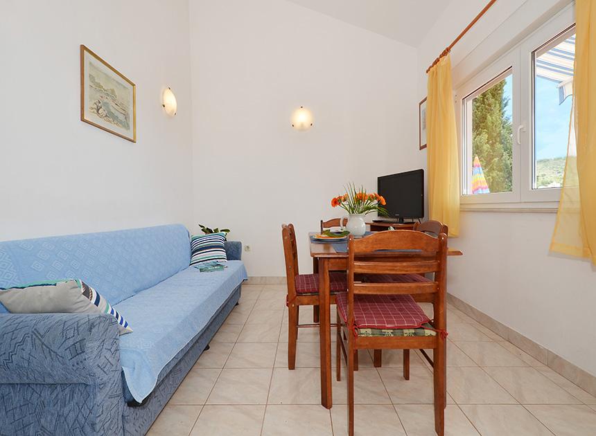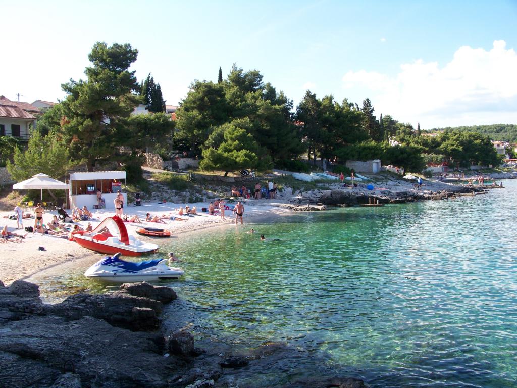 Čiovo, južna strana, uvala Mavarštica, iznajmljujemo nove apartmane za 3-4 osobe, SAT LED Samsung TV 32 (82 cm), DVD, Microwave, Blender, Air Condition, Wi-fi brzi optički internet. Svi apartmani imaju svoje parkirna mjesta u sjeni, grill, udaljeni su samo 50 m od plaže (na slici), primjereno i za manju djecu. Apartmani su udaljeni 4. km od Trogira, grada spomenika pod zaštitom UNESCA. Svi apartmani imaju veliku terasu s pogledom na more i još jedan balkon u spavaćoj sobi. Udaljenost do najbližeg restorana je 70 m. Udaljenost do aqua parka je 100 m. Udaljenost do najbliže trgovine je samo 400 m. Do najbliže ljekarne, bankomata, velikog supermarketa, tržnice i bankomata je 900 m. Na raspolaganju su vam besplatno: vrtna ljuljačka, velika dječja drvena ljuljačka, dodatni vrtni tuš, klupa pored roštilja, suncobran za terasu. Gosti imaju u dvorištu na raspolaganju Sponeta stol za stolni tenis sa setom reketa i elektronski pikado. Na Smart TV je moguće praćenje poljskih, njemačkih, engleskih, francuskih, španjolskih, talijanskih... free to air SAT programa te je također instalirana aplikacija GoNet TV (Lepša TV) koja omogućuje gostima praćenje slovenskih, čeških, slovačkih, madžarskih i ukrajinskih programa.