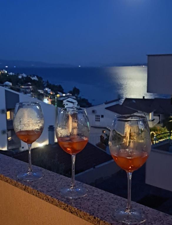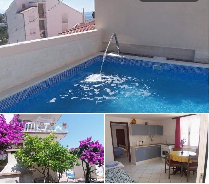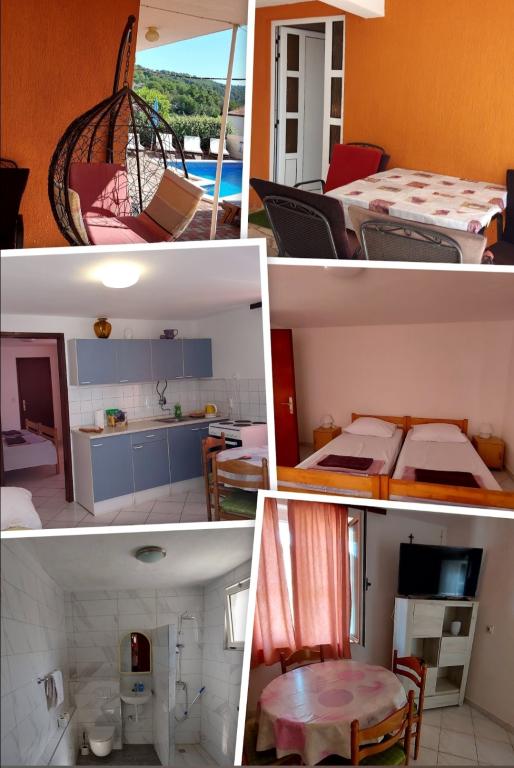 Moderno i suvremeno opremljeni apartmani s bazenom u Okrugu Gornjem na juznoj strani Čiova, imaju prekrasan pogled na more ,na otoke Šoltu, Brać.. Objekt se nalazi 10 minuta hoda do plaže, 15 minuta hoda do centra mjesta gdje se nalazi ambulanta, banka, ljekarna,... u objektu se nalaze : 1.apartman za 5 osoba na 1. katu, koji ima poseban ulaz, svoju terasu 3 spavaće sobe, kuhinju veliki dnevni boravak s blagovaonom... 2.apartman za 2 osobe u visokom prizemlju u samostalnom objektu ispred glavnog objekta (ima poseban ulaz I što je najvažnije ima svoju privatnost, također veliku terasu koja pripada samo datom apartmanu.) 3. apartman za 4 osobe u prizemlju glavnog objekta ima veliku spavaću sobu , kuhinju s blagovaonom, ekstra uređeno kupatilo, terasu. Svaki apartman ima svoj vlastiti kat, vlastiti ulaz i vlastitu terasu i polunatkriveno parkirno mjesto. Za sve apartmane zajednički je bazen, kamin i dvor. Za goste koji borave u apartmanu preko 2 tjedna nudimo 1o% popusta.