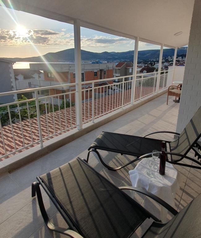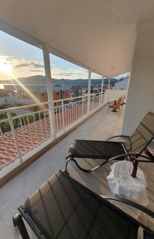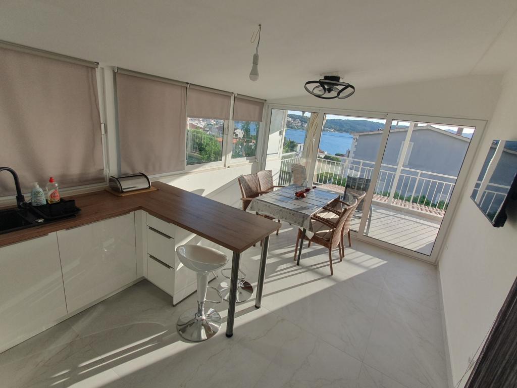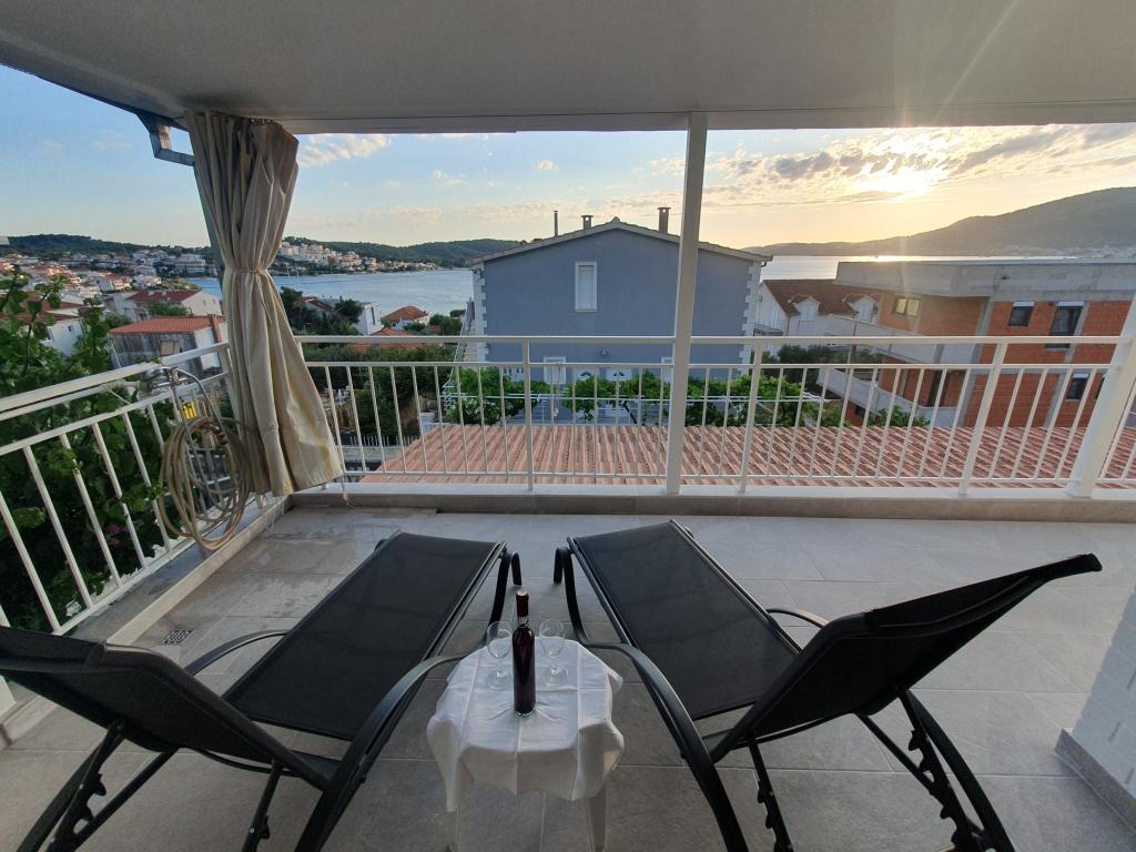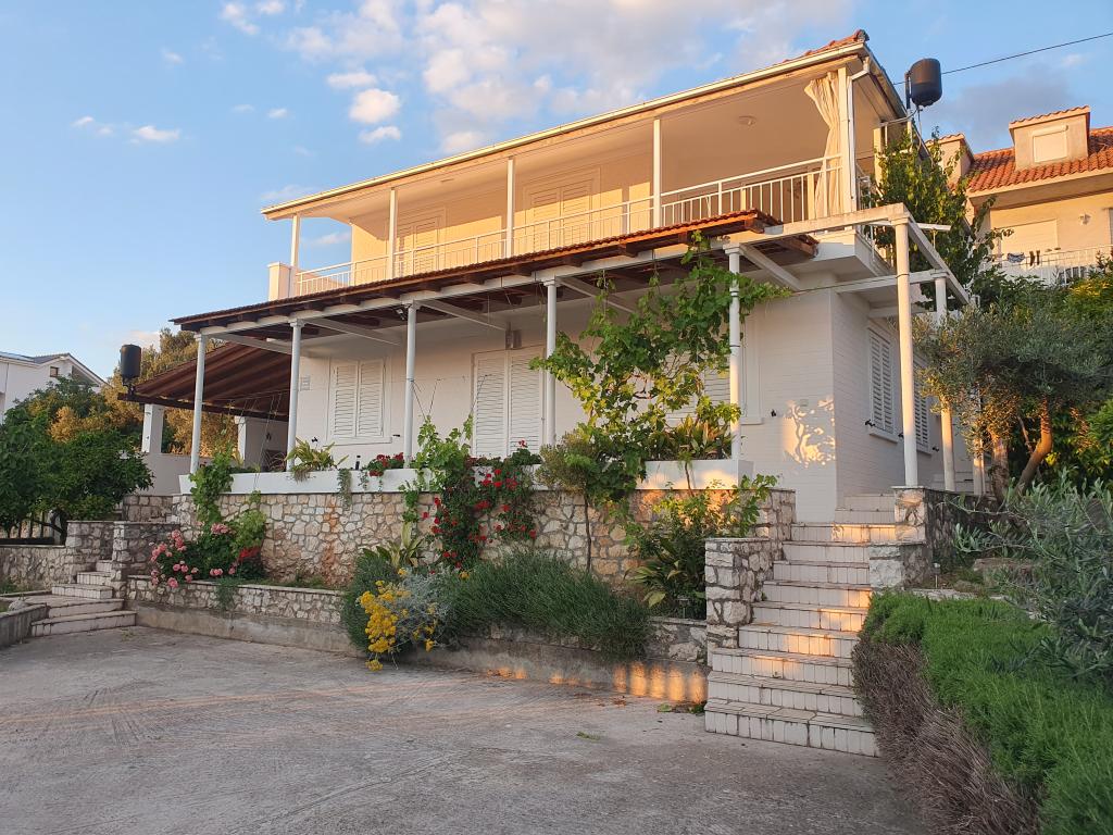 Kompletno opremljeni apartmani u kući u Okrugu Gornjem. Udaljenost od plaže je 200m (cca 3 minute hoda) te centra 400m. Sadržaji na plaži: caffe-bar, restorani, trgovine, bankomati, jet-ski, rent a boat, iznajmljivanje skutera, autobus i brod za prijevoz do Trogira, turističke informacije i sl. APARTMAN 1(A6+2): Na raspolaganju Vam je čitavo prizemlje kuće, što uključuje 3 spavaće sobe (sobe s bračnim krevetima), dnevni boravak s klimom (sadrži dodatni ležaj - kauč), kuhinju, kupaonicu i dodatni wc. U prostranom dvorištu koje ima povišenu terasu možete uživati u pripremanju roštilja, vanjskom tušu, ili pak samom pogledu na more. APARTMAN 2 (A4): Novoadaptirani apartman na prvom katu kuće, s prostranom terasom i prekrasnim pogledom na more. Sadrži 2 spavaće sobe (bračni kreveti), dnevni boravak s klimom, potpuno opremljenu "open-space" kuhinju i kupaonicu. Unutar dvorišta osigurana su Vam 4 parkirna mjesta.