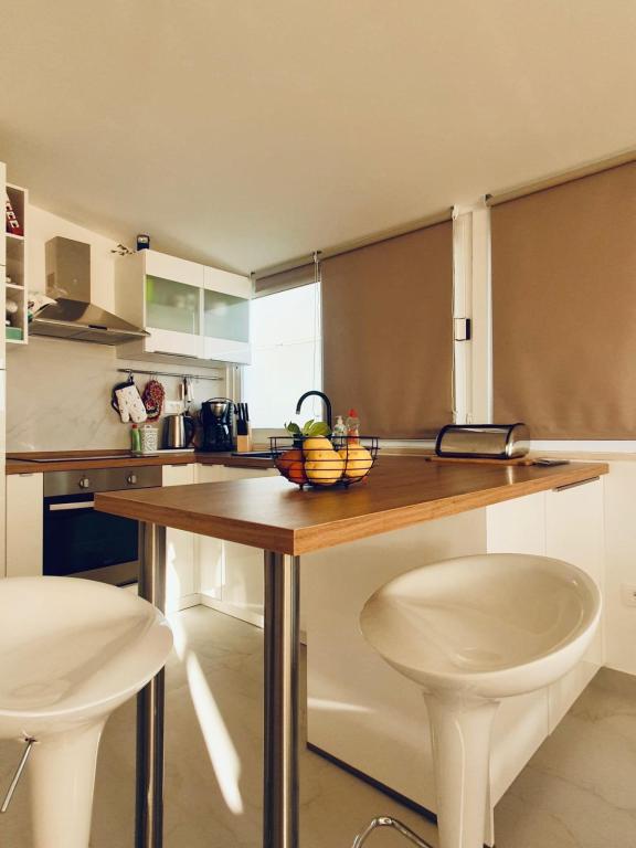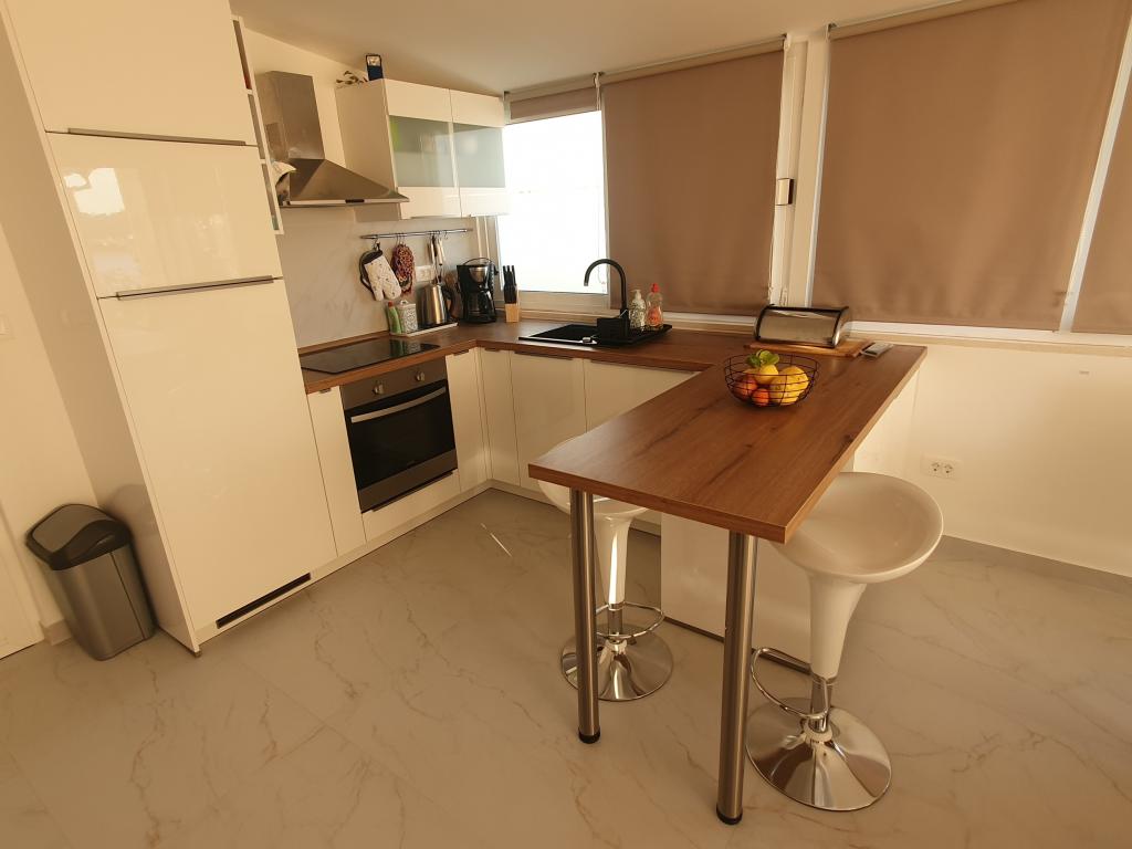 Veliki stan, 3 odvojene sobe, kauč na razvlačenje u dnevnom boravku, kupaonica i dodatni wc. Kuhinja je potpuno opremljena - veliki hladnjak, perilica posuđa, indukcijska ploča i pećnica. Mnoštvo tanjura, šalica, čaša, pribora za jelo i ostalih dodatnih kuhinjskih dodataka. Stan je temeljito očišćen, bez gljivica i plijesni. Prekrasna terasa s tušem, veliki stol, roštilj. Druga terasa s udobnim kutkom i "krovom" od biljaka Blizina plaže i trgovine. Stan je zadovoljio sve moje (visoke) zahtjeve, stvarno ga preporučam!