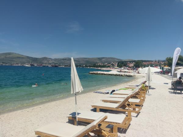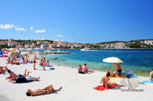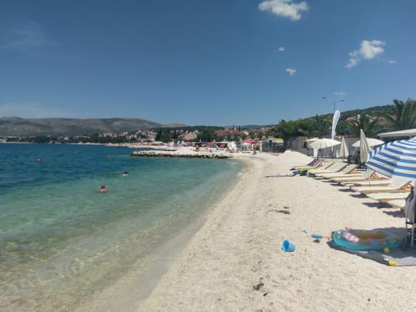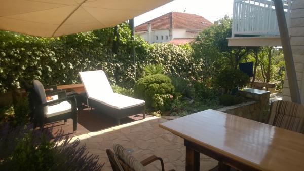 Kuća apartmana Mare je smještena u Okrugu Gornjem samo 3 km udaljena od Trogira i 30 km od Splita. Ako se odlučite provesti odmor u našoj kući, očekuje vas prijateljska i opuštena atmosfera, u mirnom okruženju, uz bilo kakvu pomoć od strane domaćina. Položaj naše kuće izrazito je povoljan, samo 15 metara od plaže koja nudi razne sadržaje barove, iznajmljivanje skutera, brodica, skutera(motocikala), skijanje na moru, vožnja gliserom, padobranom. U krugu od 300 m od naše kuće očekuju vas restorani, supermarketi, marina iz koje mozete borodm –taxi doci do trogirske rive svakih pola sata, , apoteka, teniski tereni. U sklopu kuće smještena je kamena dalmatinska kućica -komin u kojoj možete napraviti razna jela na žaru. Unutar dvorišta nudimo vam i parking za automobile.