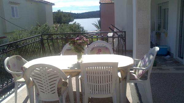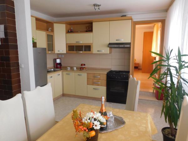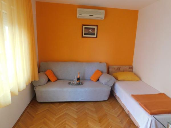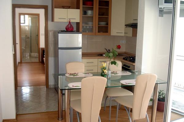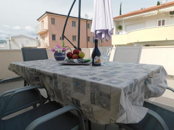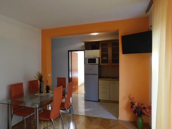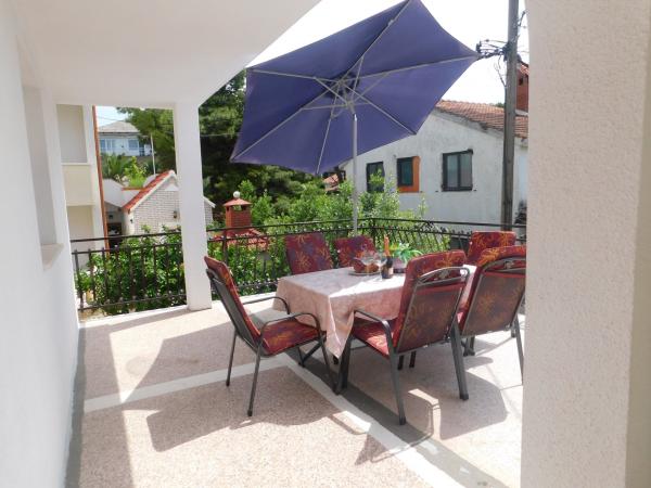 Apartmani se nalaze u obiteljskoj kući, 30 metara od plaže. Moderno su opremljeni, a atomosfera je ispunjena komforom i privatnošću. Sastoje se od 4 novouređena apartmana. Ispred kuće nalazi se veliki parking, te roštilj koji omogućava uživanje u tradicionalnim dalmatinskim specijalitetima i autentičnom ambijentu. Samo nekoliko metara od apartmana nalazi se šljunčana plaža, igrališta za djecu, kao i brojni kafići te restorani.