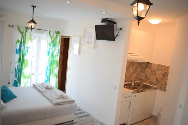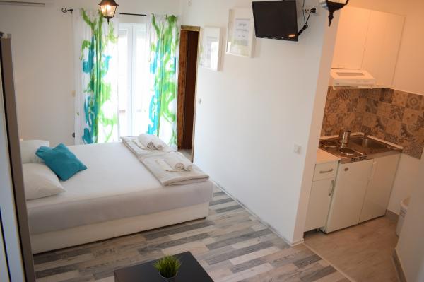 Turistička pristojba nije uključena u cijenu.Objekt Apartments Milas obiteljska je kuća s prostranim i svijetlim apartmanima. Gostima je dostupan besplatan pristup internetu u javnim prostorijama. Na zahtjev gosta Apartmani Milas organiziraju izlete brodom na otoke. Možete naručiti jela iz restorana, sami kuhati ili prošetati do brojnih restorana, barova na plaži i konoba. Zračna luka Split udaljena je samo 5, 5 km, a apartmani Milas gostima na zahtjev mogu dogovoriti uslugu prijevoza.