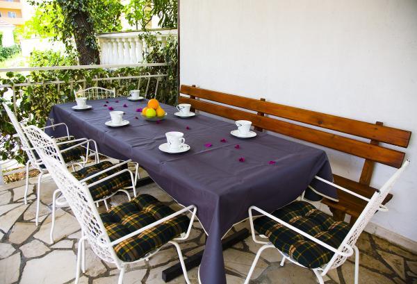 Apartmani se nalaze u Okrugu Gornjem, na adresi Planikovica VII/3. Odlike koje karakteriziriraju prostor na kojem su locirani apartmani se mogu prikazati kao: čisto more, netaknuta priroda, idealno mjesto za boravak za obitelj s djecom i prijatelje. Svaki apartman ima predivan pogled na more i prirodu sa svojih balkona i prostranih terasa. Svaki apartman ima privatni parking, klima uređaj te pravo na besplatni neograničeni internet. Udaljenost od stare jezgre povijenost grada Trogira je svega 4. 5 kilometara. U neposrednoj blizini se nalazi plaža Copacabana koja je duga 2 kilometra. Osim ugodnog boravka mogu se pronaći razne zabavne aktivnosti za svaku dobu. Na glavnoj, već navedenoj plaži se nalazi veliki broj barova, restorana te trgovina. Ukoliko tražite ugodan boravak na mirnom mjestu, u blizini mora s zrakama sunca bez buke od automobila onda ste na pravom mjesto Ap. 1 ima 3 sobe svaka soba ima kupatilo i balkon Ap. 3 ima 3 sobe sa 2 kupatila Ap ( Potkrovlje) 3 sobe