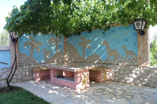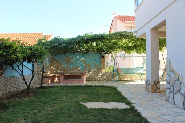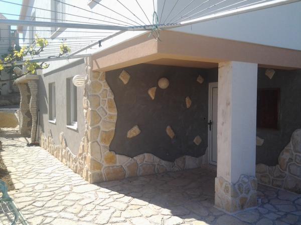 ugodna i lijepo uredena obiteljska kuca u okrugu gornjem. Preko puta je trgovina, do prelijepe prirodne plaze treba vam 5 min. , do centra 10 min. U centru su svi potrebni sadrzaji ljekarna, doktor, posta, kafici. Iz kuce se pruza prelijep pogled na more i otoke. Sve sto vam bude potrebno stojimo na raspolaganju 24 sata. Rostilj je takodjer u ponudi, a posebna pogodnost za goste Velikog apartmana koji borave u 6 i 9 mjesecu je SKUTER VESPA, a 7 i 8 mjesec po dogovoru. Parking za automobil je natkriven, jedna vrsta otvorene garaže, tako da vaš auto ljubimac ne gori na suncu.