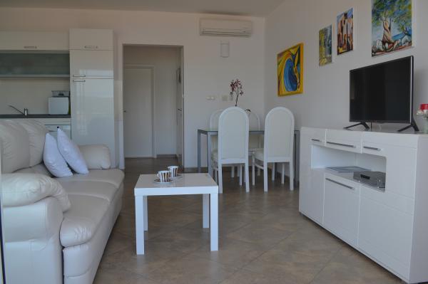 Turistička pristojba je uključena u cijenu.Vrlo ljubazni domaćini, odličan kontakt. Apartman čist i vrlo dobro opremljen: perilica posuđa, perilica rublja, glačalo, 2 klima uređaja!, prekrasan pogled s velikog balkona. Preporučujem
