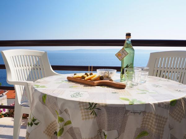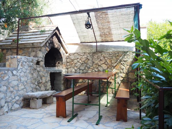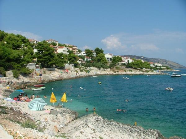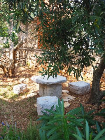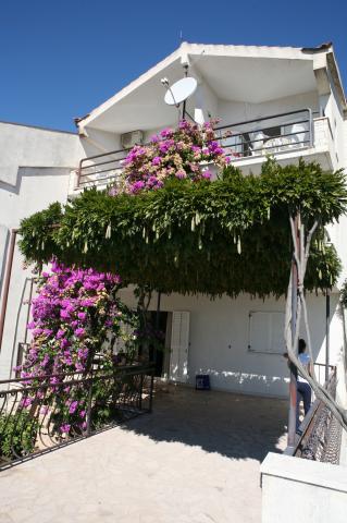 Apartmani su smješteni s južne strane Čiova u mjestu Okrug Gornji. Udaljeni su oko 100 m od mora, prvi red uz cestu. Na raspolaganju su 4 apartmana s po 4 ležaja (2 2). Svaki apartman ima zaseban ulaz i balkon s kojeg se pruža prekrasan pogled na modro more i okolne otoke. Apartmani se sastoje od jedne spavaće sobe s 2 ležaja (bračnim krevetom), dnevnog boravka s kuhinjom i 2 rasklopiva ležaja, hodnika i balkona. Apartmani su opremljeni klima uređajem, SAT/TV i bežičnim internet priključkom (Wi-Fi). Kuhinja je opremljena električnim kuhalom s 2 ploče, hladnjakom i setom posuđa za kuhanje i posluživanje 6 osoba. U dvorištu kuće prevladava nježno mediteransko zelenilo s maslinama, a na raspolaganju su vam i vanjski ograđeni tuš te kameni roštilj uz kojeg je postavljen stol za jelo i druženje. U blizini apartmana nalaze se stjenovite plaže te velika šljunčana plaža u središtu mjesta u kojima mogu uživati svi uzrasti.