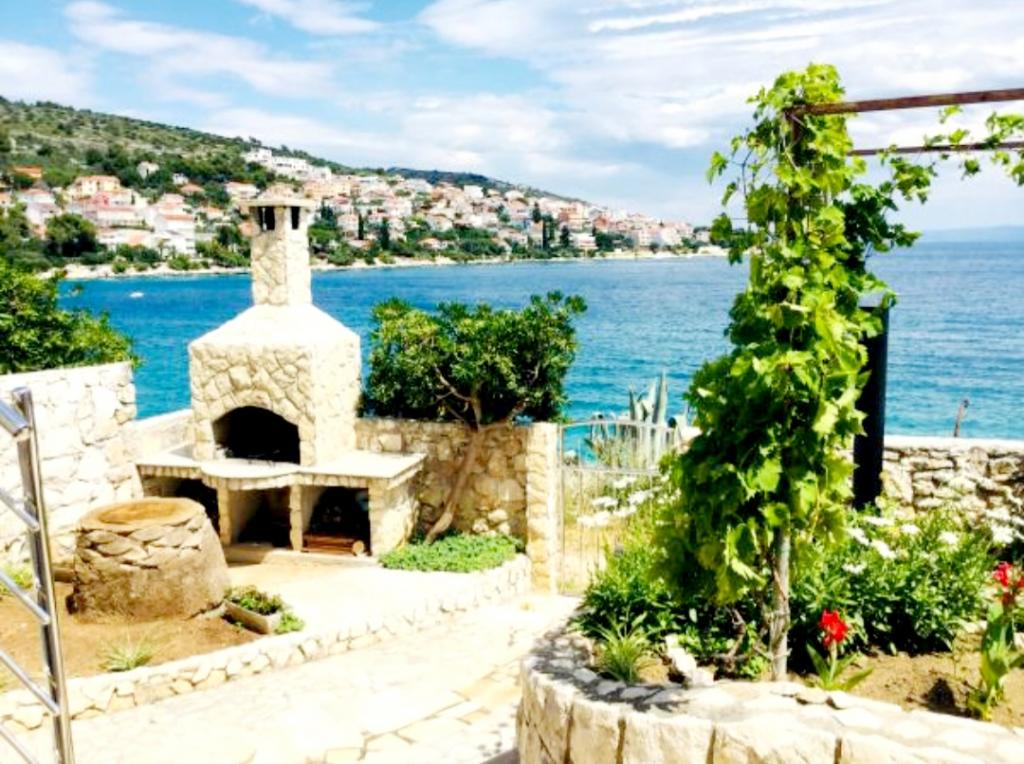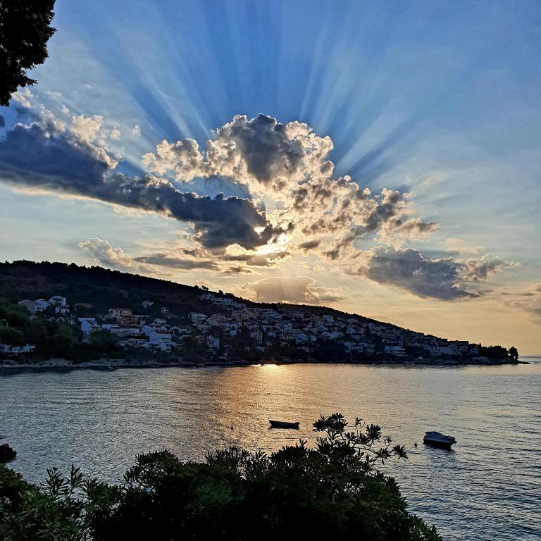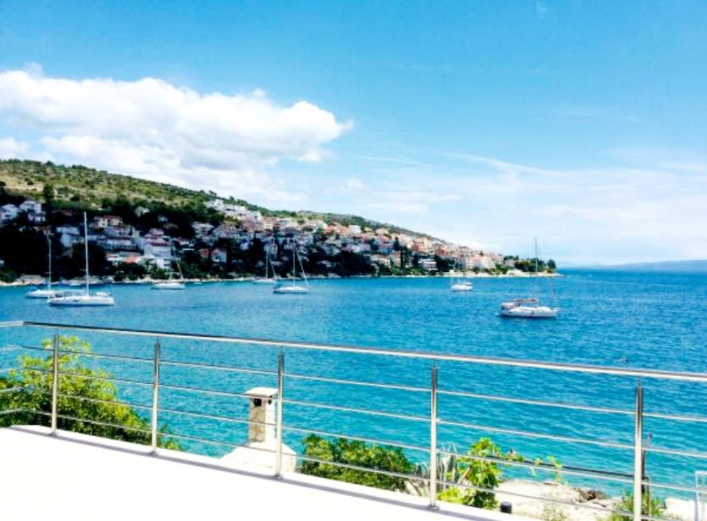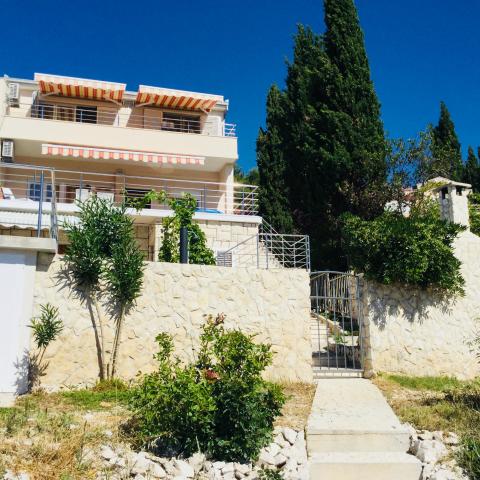 Apartmani na otoku Čiovu, smjesteni prvi red do mora, kompletno i suvremeno opremljeni, u mirnom naselju s pogledom na otok Brač i Šoltu, idealno mjesto za mir i opuštanje. Svaki apartman ima 2 spavaće sobe, dnevni boravak, kuhinju, kupaonu, hodnik, i veliku terasu. Parking obezbjedjen u dvoristu. Savršena mikroklima. Okrug Gornji je udaljen 500 m a Trogir 5 km od kuce. Do Trogira vozi redovna brodska linija sa glavne plaže u Okrugu. Plaža u Okrugu je šljunčana i nudi sadržaje poput restorana, najma broda, skutera, škola ronjenja, izleti brodovima na otoke. U blizini su teniski tereni. Split je udaljen oko 30 km, aerodrom oko 8 km a Sibenik 45 km, Nacionalni park Krka 50 km.