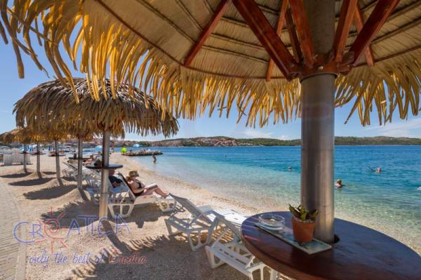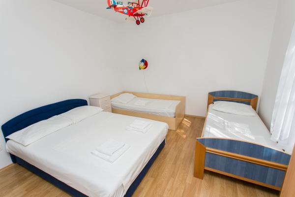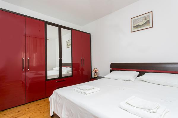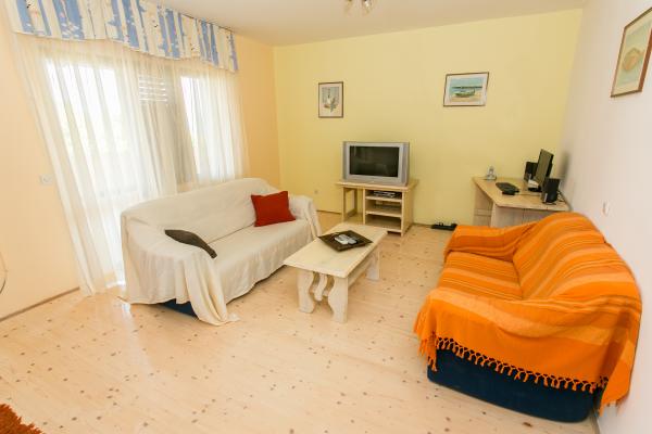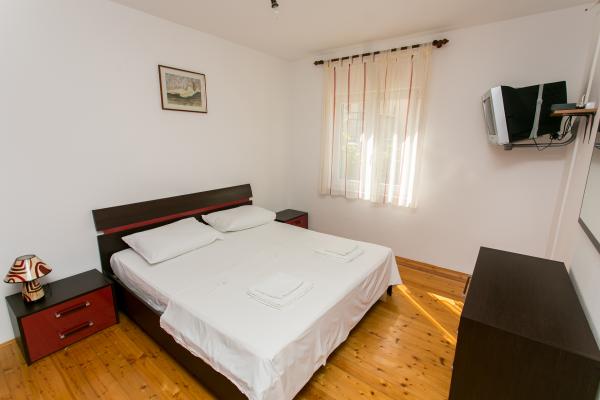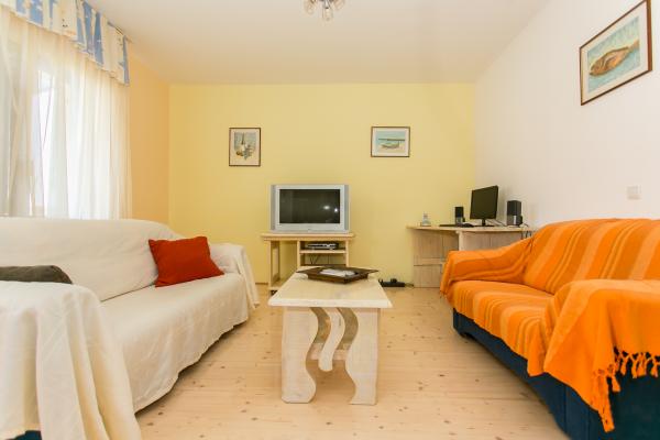 Apartman je velik i prostran (100m2),a terasa (25m2) ima predivan pogled na more. U sklopu apartmana je parking i okučnica. Apartman ima vlastiti vrt u kojem se nalazi roštilj.Atraktivna plaža sa puno sadržaja je udaljena svega 2 minute hoda. U apartmanu možete uživati i odmarati se , a ako se poželite aktivnosti sve vam je u blizini.Apartman je smješten u mirnom susjedstvu s lokalnim stanovništvom.