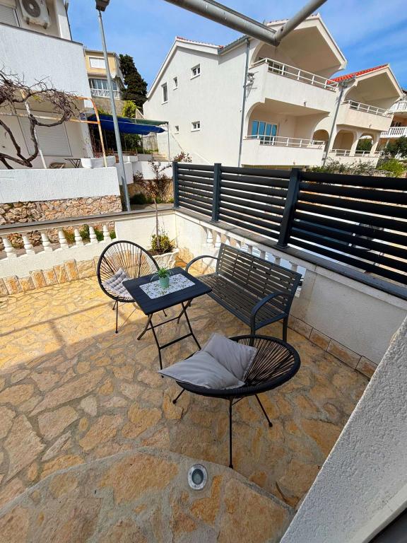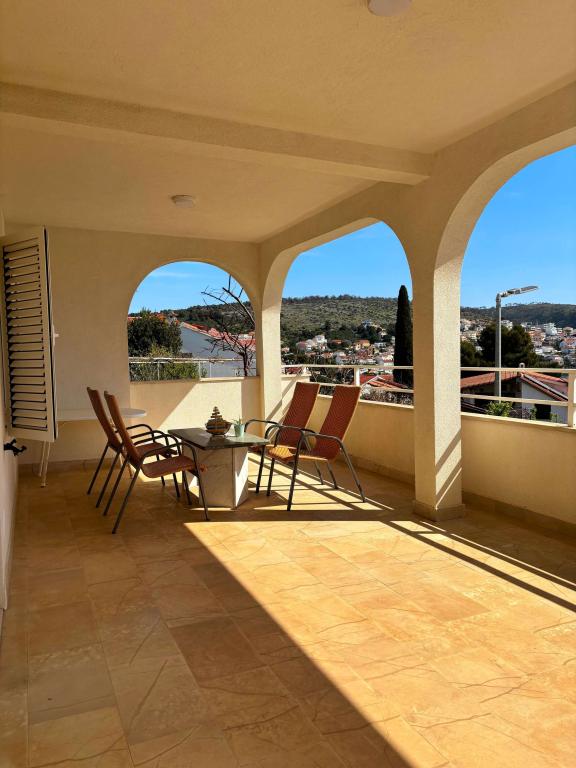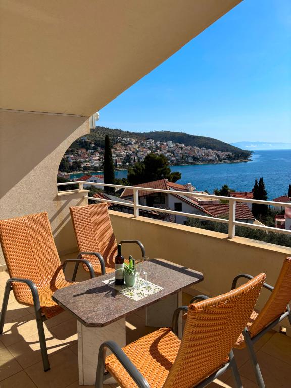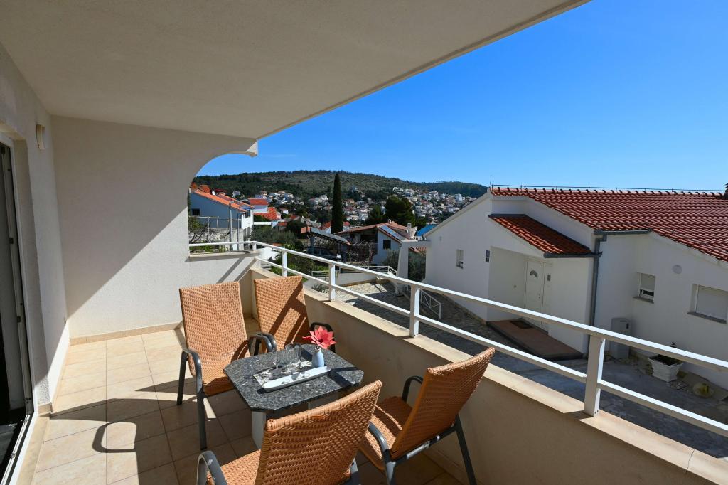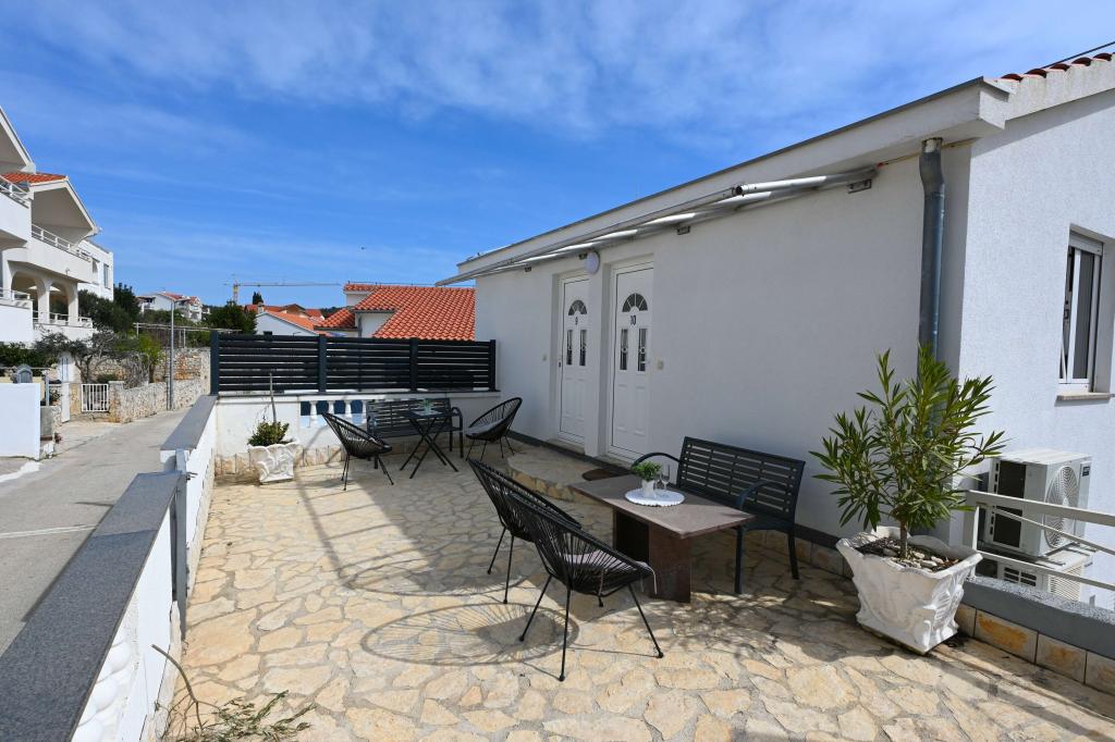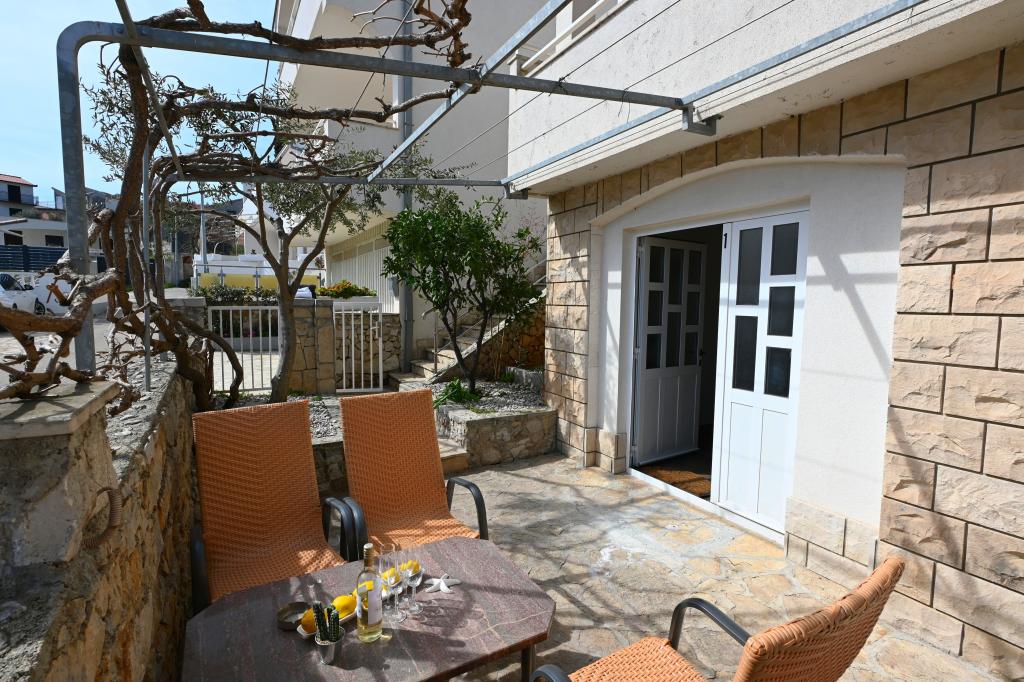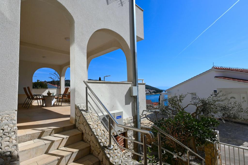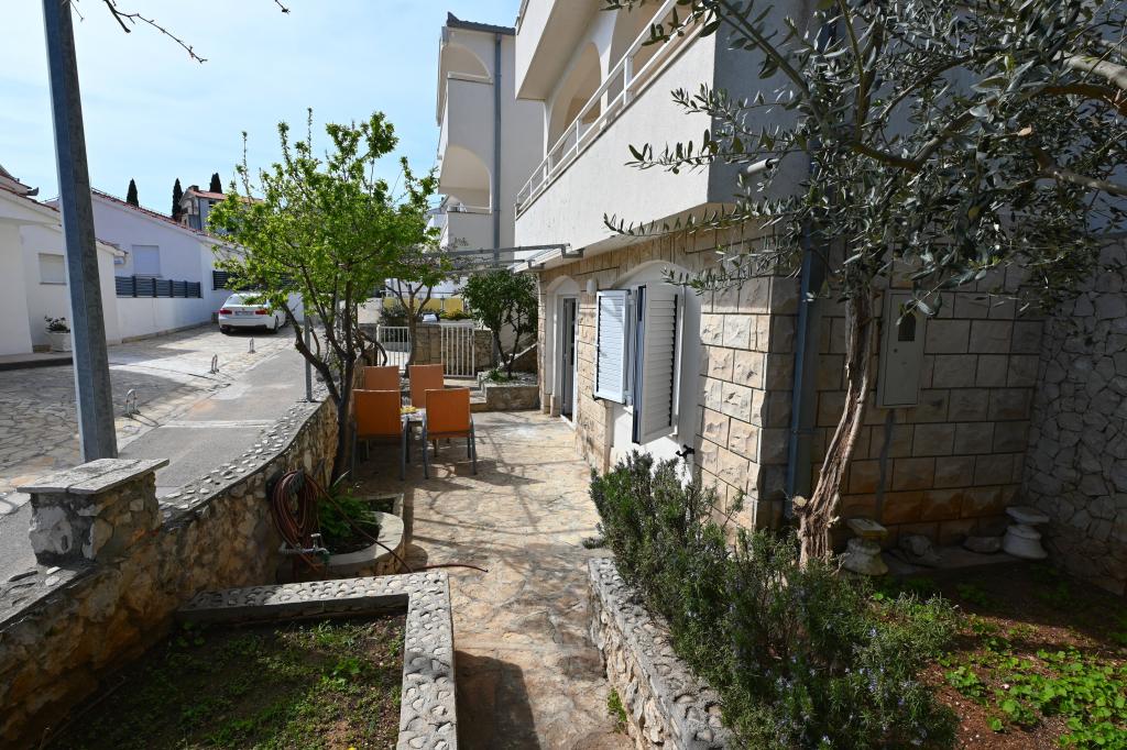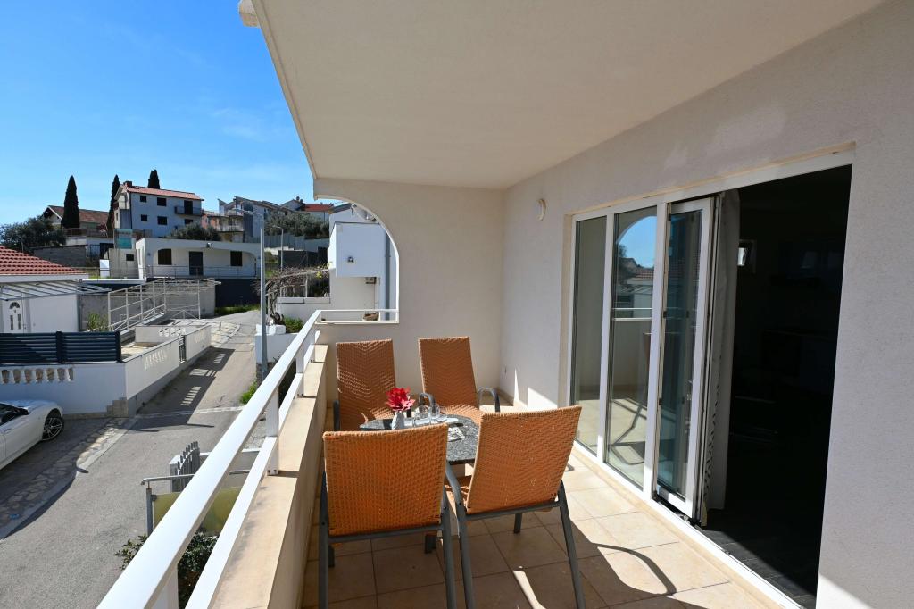 Prekrasni apartmani na Čiovu s predivnim pogledom na more Naša kuća na otoku Čiovu nalazi se samo 2 minute pješice od plaže i nudi nevjerojatan pogled na Jadransko more. Smještena u mirnom okruženju, savršena je za sve koji žele opuštanje uz sunce, more i privatnost. Objekt se sastoji od 11 apartmana – 5 većih i 5 manjih, te jednog posebnog apartmana s privatnim bazenom. Svaki apartman ima svoju terasu, na kojoj možete uživati u prelijepim zalascima sunca i svježem morskom zraku. Apartmani su moderno i potpuno opremljeni, s kuhinjama, klimatizacijom, besplatnim Wi-Fi-jem i svim potrebnim sadržajem za ugodan boravak. Ispred kuće nalazi se parking prostor, tako da možete bez brige parkirati svoj automobil. Idealno je za obitelj, parove ili sve koji žele opuštanje uz more, ali i istraživanje ljepota Čiova i okolice. Osim uživanja na plaži, Čiovo nudi i mnoge aktivnosti poput biciklizma, pješačenja i vodenih sportova. Također, u blizini se nalazi Trogir, grad pod UNESCO-ovom zaštitom.