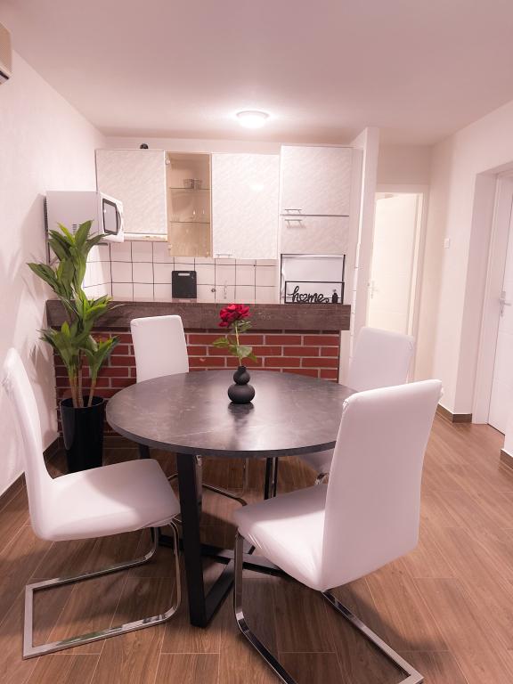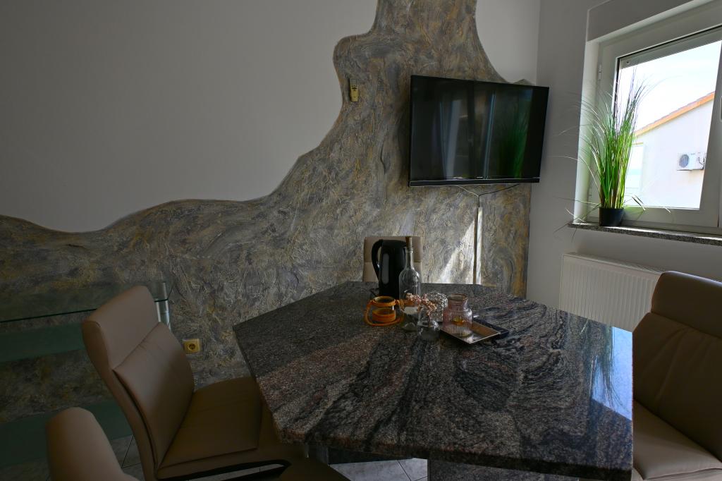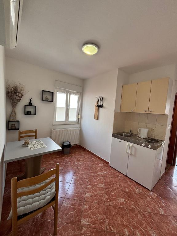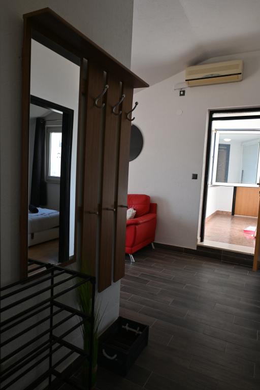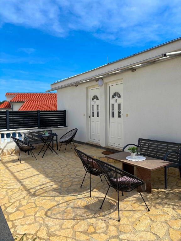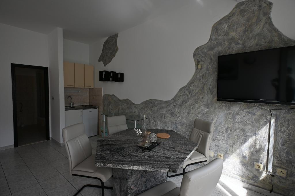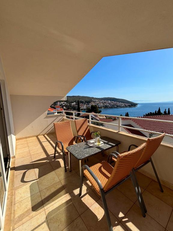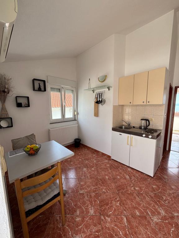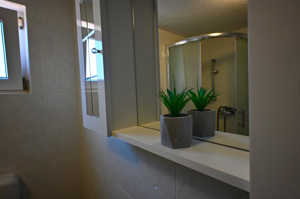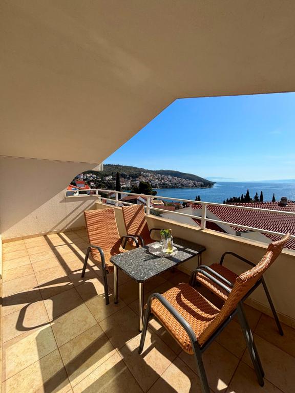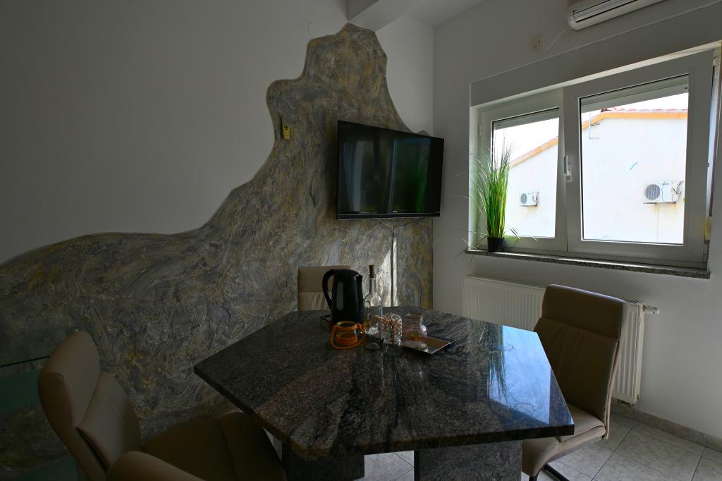 Prekrasni apartmani na Čiovu s predivnim pogledom na more Naša kuća na otoku Čiovu nalazi se samo 2 minute pješice od plaže i nudi nevjerojatan pogled na Jadransko more. Smještena u mirnom okruženju, savršena je za sve koji žele opuštanje uz sunce, more i privatnost. Objekt se sastoji od 11 apartmana – 5 većih i 5 manjih, te jednog posebnog apartmana s privatnim bazenom. Svaki apartman ima svoju terasu, na kojoj možete uživati u prelijepim zalascima sunca i svježem morskom zraku. Apartmani su moderno i potpuno opremljeni, s kuhinjama, klimatizacijom, besplatnim Wi-Fi-jem i svim potrebnim sadržajem za ugodan boravak. Ispred kuće nalazi se parking prostor, tako da možete bez brige parkirati svoj automobil. Idealno je za obitelj, parove ili sve koji žele opuštanje uz more, ali i istraživanje ljepota Čiova i okolice. Osim uživanja na plaži, Čiovo nudi i mnoge aktivnosti poput biciklizma, pješačenja i vodenih sportova. Također, u blizini se nalazi Trogir, grad pod UNESCO-ovom zaštitom.