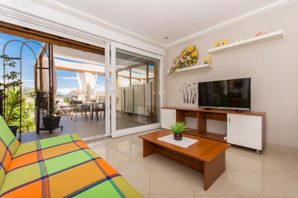 Vrlo smo zadovoljni sa smještajem. Vrlo lijep stan, čisto s lijepim widokiem.Kuchnia vrlo dobro opremljena - to je sve! Blizu plaže (2 minute), šljunčana plaža s blagim spusta prema moru. Idealno za obitelji s djecom (daleko od ceste) off plaže su prekrasne stijene prilagođene spustiti u more. Vrlo blizu je i trgovina mješovitom robom, dva restorana i skutera. Vlasnici vrlo prijateljski i gostoljubivi. Mr. Milijenko pruža dodatne usluge prijevoza. Vrlo rado da se na putovanjima za malo novca. Mnogo je on ovisi o tome kako su njegovi gosti znaju i vide najljepša mjesta u regiji u Hrvatskoj. Vrlo korisno (odlaska naši prijatelji razbio auto-poludnevnog posvećen pomoći-nesebično! Vrlo dobar engleski. Sve preporučila mirne savjesti U! POZDRAV I VLASNICI!