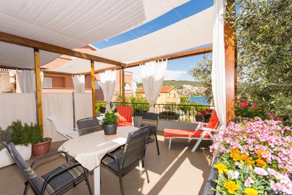 NOVO Okrug Gornji Bočić, lijepo uređen apartmani na ugodnom i mirnom predjelu drugi red od mora, s pogledom, velikom terasom, vrtnim barom, grilom, i td. Objekat se nalazi 5 min hoda od centra Okruga Gornjeg. Apartmani su klimatizirani sa wi-fi internetom, te satelitskom televizijom, U ponudi imamo i organizirane izlete nasim luxsuznim mini-busom ( slapovi Krke, Plitvička jezera, Rafting na Cetini, Dubrovnik, Split i td, fish picnic itd. ), moguć i dnevni najam brodice.
