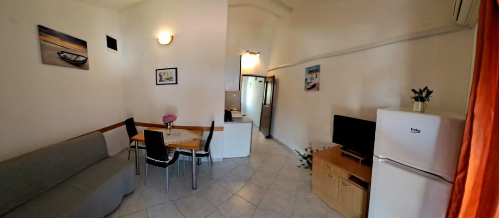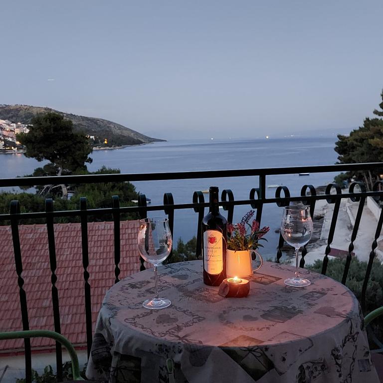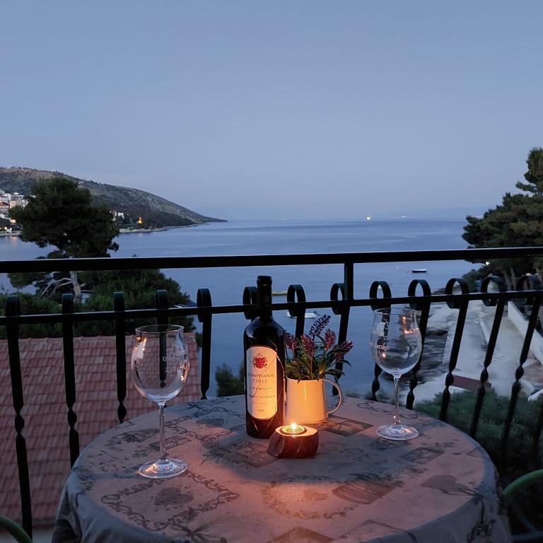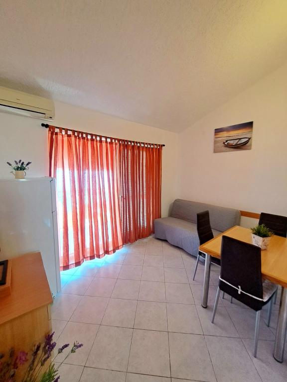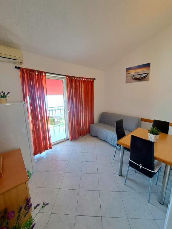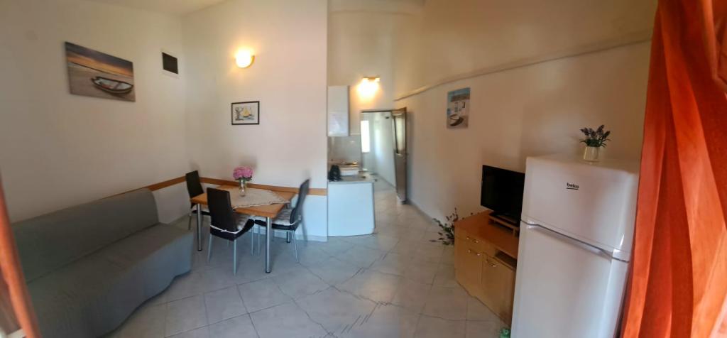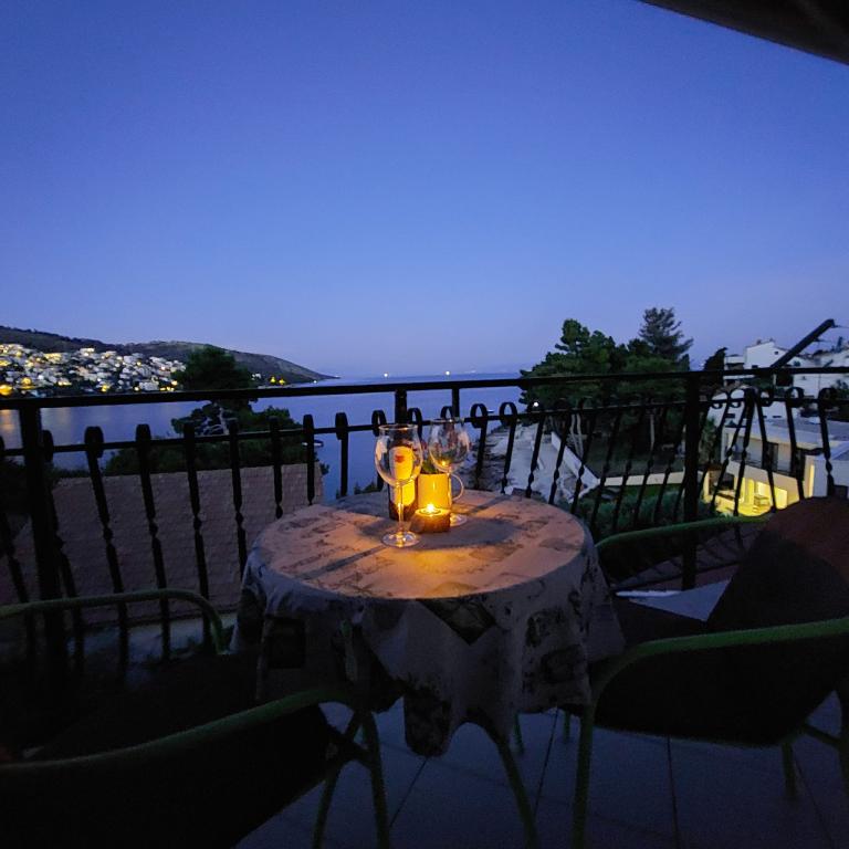 Apartmani Toni smješteni su u izuzetno mirnom okruženju, samo 30 metara od mora. Odmah ispod apartmana je prekrasna šljunčana plaža, a sa lijeve i desne strane plaže su morske stijene. More je kristalno čisto. Iz apartmana se pruža predivan pogled na more i otoke. Tko dođe ima savršene uvjete za idealan odmor u miru. Apartmani su klimatizirani. Parking i wi-fi su besplatni.