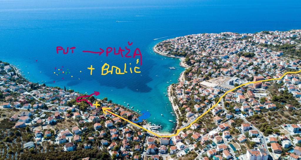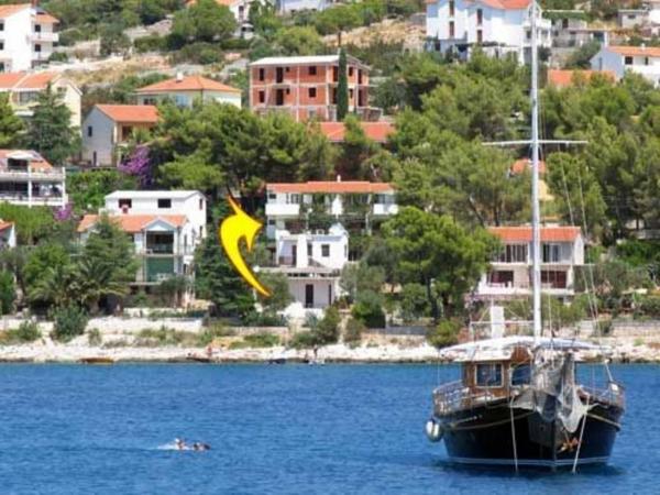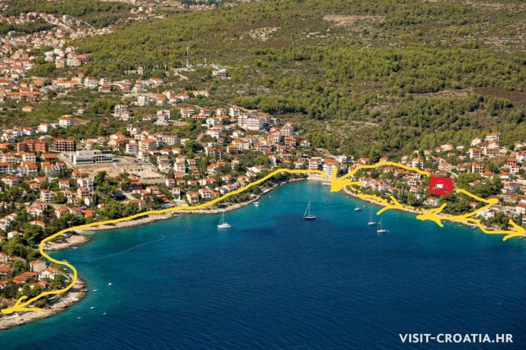 Turistička pristojba je uključena u cijenu.Besplatni, internet, klima. parking...Uz minimalne naknade mogu se dobiti USLUGE kućne PRAONICE rublja. Sačuvana priroda uz more pruža šetnju i osamljene plaže. Plaže su udaljene 200m šljunčane, kamenite...Moguća je vožnja biciklom. u blizini je tenis teren, a 200 m od kuće je škola ronjenja- izleti ronilački, mogući najam brodice, skutera, , . na mjesnoj plaži zabavni vodeni park za djecu. UNESCO-grad Trogir udaljen 5 km. LEŽAJI u apartmanima: A1 i A2 su isti i imaju : BRAČNU SOBU i 2 sobe sa jednoležajnim KREVETOM I POMOĆNI U DNEVNOJ.TERASA-BALKON oko 15m. A3 ima BRAČUNU SOBU-MALI BALKON, Jednoležajnu SOBU i 2 odvojena LEŽAJA u DNEVNOJ-MALI BALKONJ i ima 2 TUŠ_WC.TERASA 12m , preko koje se ulazi u apartman A4 ima BRAČUNU SOBU-MALI BALKON, sofa-120 cmm širine u dnevnoj i 2 odvojena LEŽAJA u DNEVNOJ -MALI BALKON i imaju 2 TUŠ_WC.TERASA 12m , preko koje se ulazi u apartman