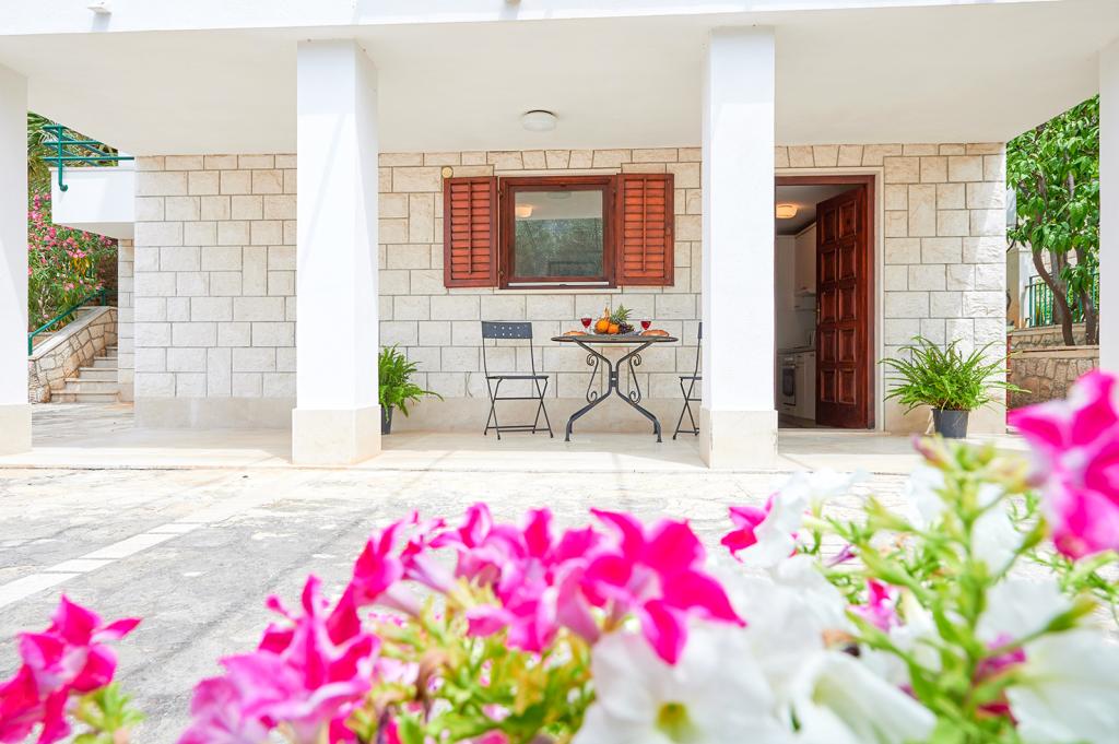 Šarmantna kuća blizu plaže okružena vrtovima i mediteranskim biljkama. Svaka etaža kuće je zaseban apartman sa velikim sobama. Udaljenost od plaže je 40 metara. Ispred kuće ima dovoljno parkirnih mjesta. Ovdje možete provesti idiličan i aktivan odmor. Vanjski roštilj nalazi se iza kuće i ima natkriveni prostor za sjedenje za 15 osoba.