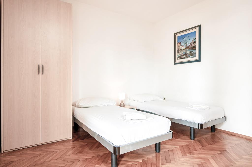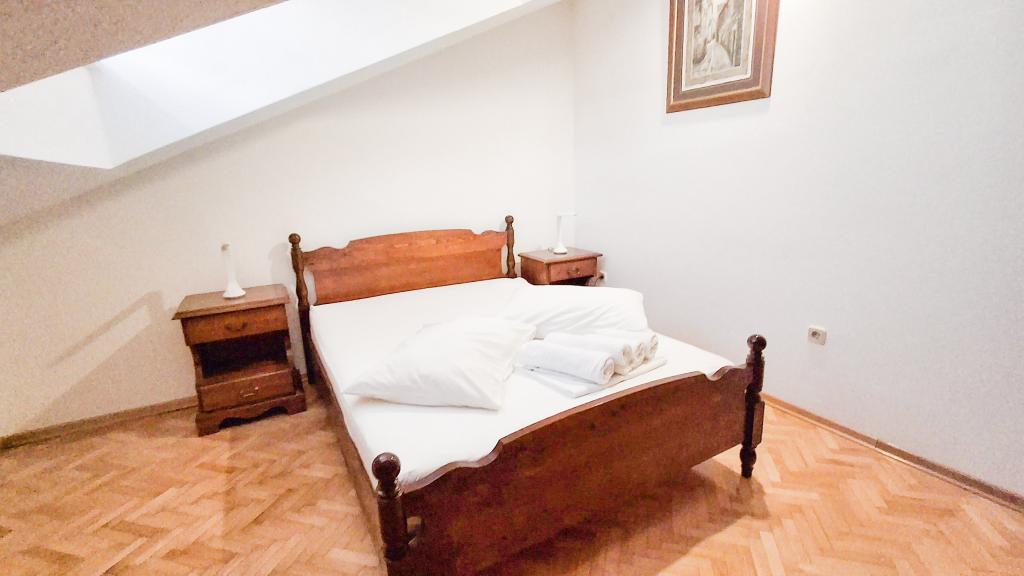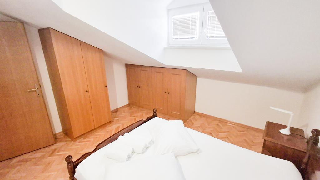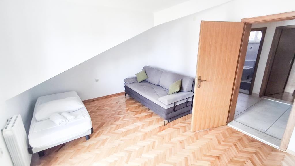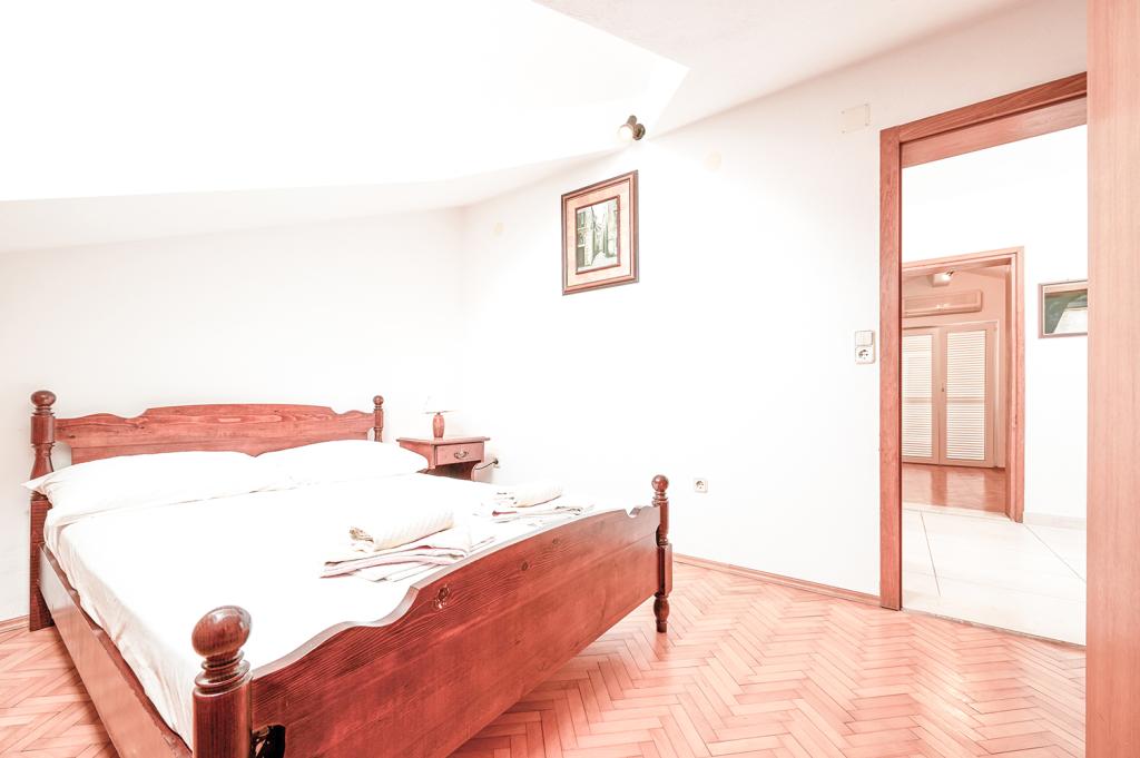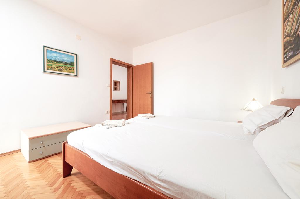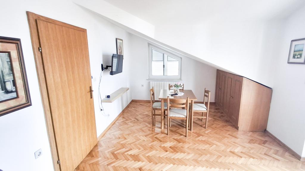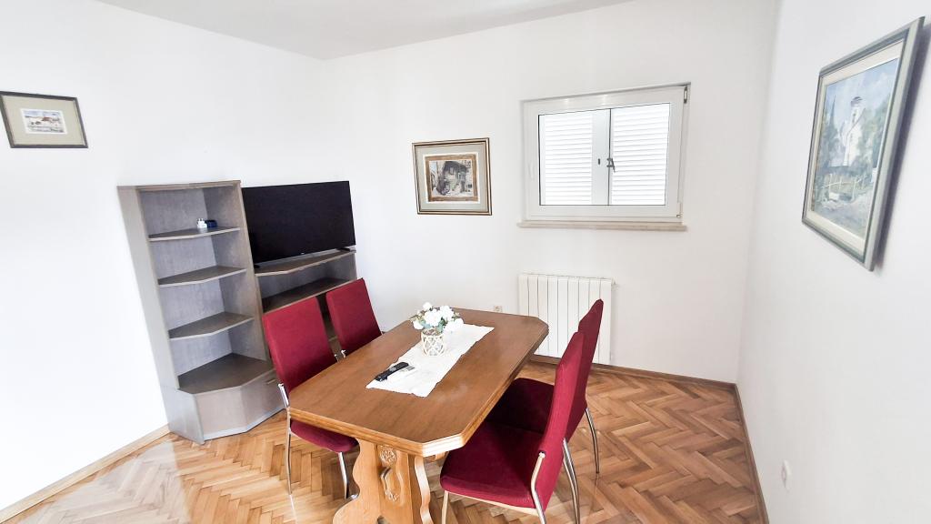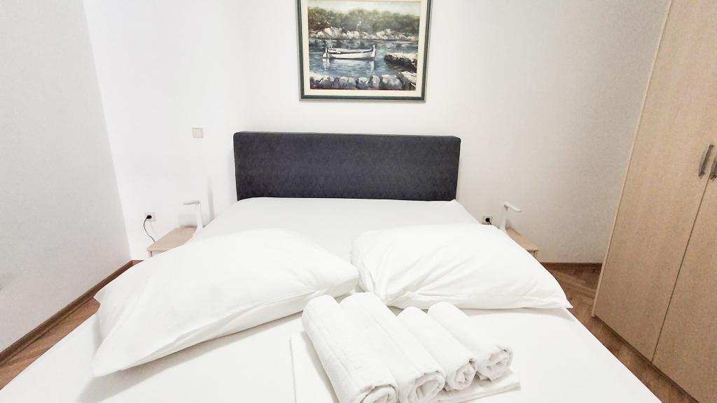 Apartman ima dobru lokaciju i velik potencijal, no trebalo bi ga dobro renovirati da bi opravdao cijenu smještaja u sezoni koja iznosi 150 € za noćenje! Prvenstveno treba uložiti u unutarnju zvučnu izolaciju, jer buka između stanova je nepodnošljiva. Obično hodanje kroz stan, pomicanje stolica u blagovaoni, nešto slučajno padne na pod i slično, stvara veliku buku, tako da miran odmor u ovom apartmanu se ne može očekivati. Apartman je velik i prostran, no za tako visoku cijenu je zaista loše opremljen. Klima je glasna i nalazi se samo u jednoj prostoriji. Kuhinja je dotrajala, loše opremljena. Kupaonica prosječna, ništa posebno. Nadalje, apartman ima samo jednu spavaću sobu, a druga je zapravo dnevni boravak/blagovaona u kojem je su umjesto kauča neki neudobni kreveti, dimenzije da se odrasla osoba teško okrene, a kamo li dobro naspava. Jedino pozitivno je lokacija, koja je blizu plaže, ali to nije dovoljno da bi vrijedio te cijene koja se traži. Domaćin je ljubazan, ali na pritužbe koje su mu iznesene na temu čistoće i buke, nije baš puno utjecao..