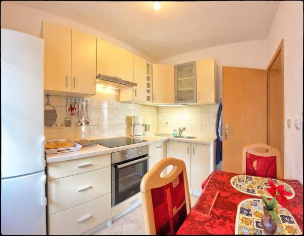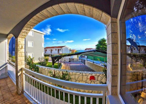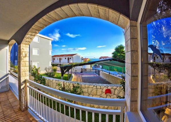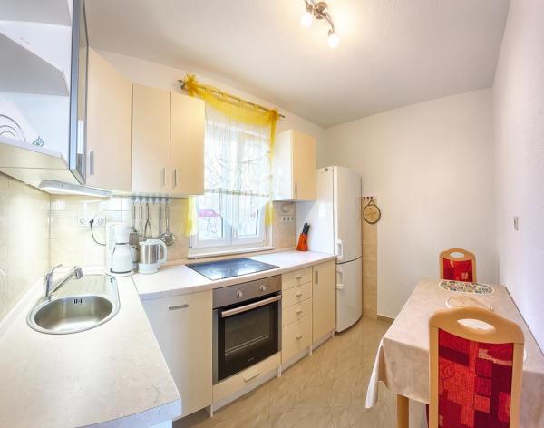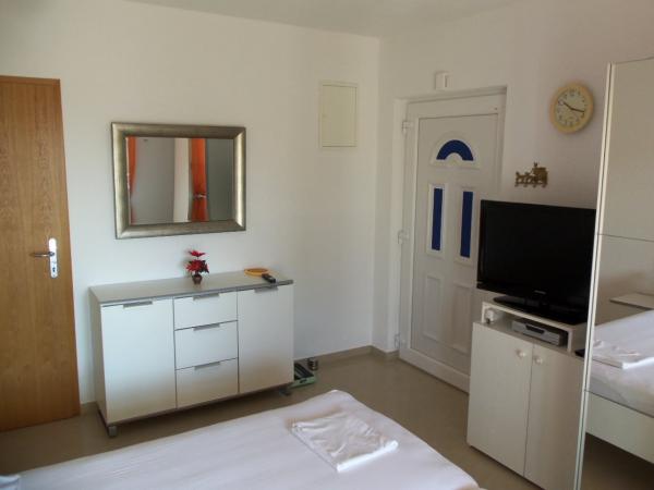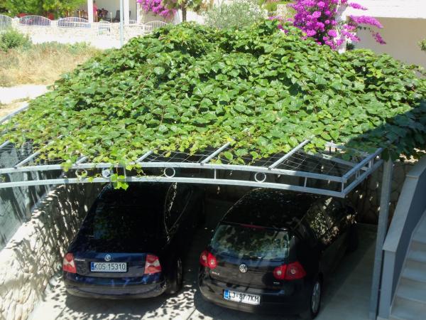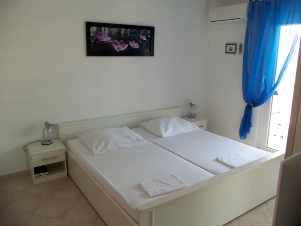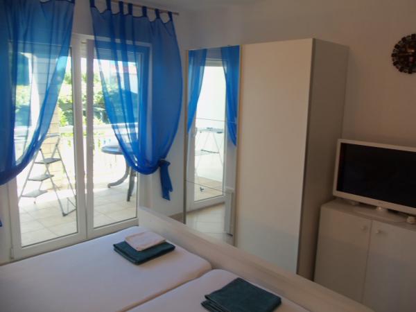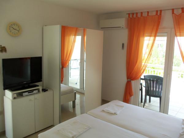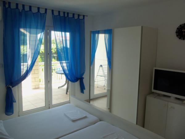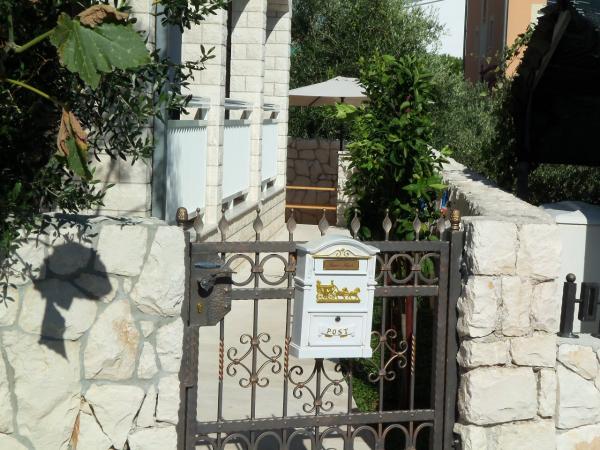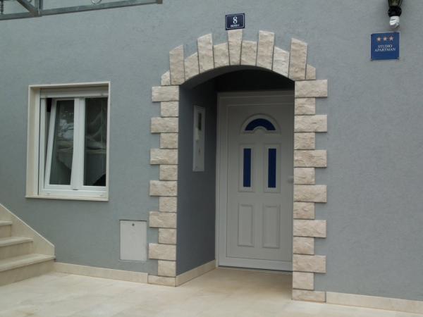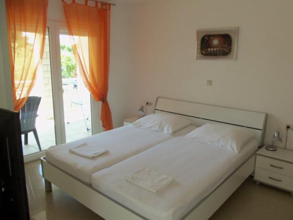 Moderno opremljena dva Studio Apartmana na prizemlju sa balkonima. Na raspolaganju je i rostilj,tus u vrtu, plac za auta su u hladovini od kivija. Okucnica sa vrtom gdje ima limuna, narandi, mandarina, kivi, grozda, sipak i jedna mala smokva Sve je to udaljeno 200m od mora. 500m od restorana ili1km od trgovine, poste, apoteke itd.