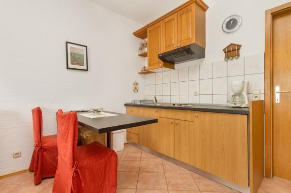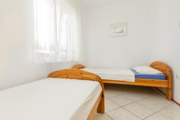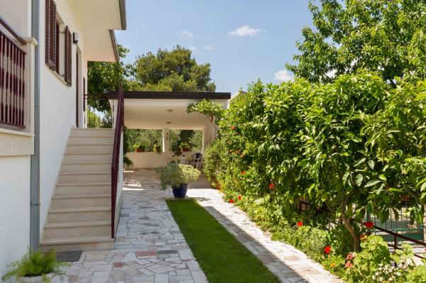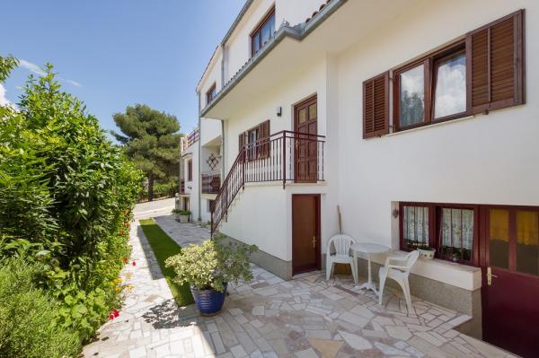 Kompletno i suvremeno opremljeni apartmani u mirnom djelu Okruga Gornjeg, treći red od mora. Objekt je u blizini male plaže koja je udaljena 50 metara od kuće. Djelomično sadrži prirodnu hladovinu. Plaža je prilagođena roditeljima sa malom djecom.