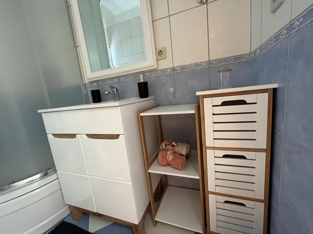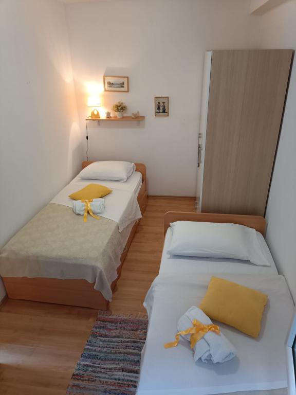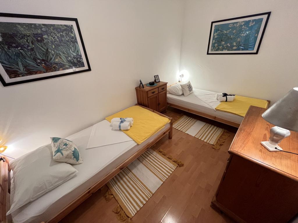 Hvala za sjajnih 12 dana Apartmani su čisti, mirisni, ništa nam u njima nije falilo. Velika, prostrana terasa sa pogledom na more. Betonske ploče odmah ispod apartmana Koristili smo ih svakodnevno sa starijom djecom (privatnost, hladnoća nakon ručka). Točno nasuprot (3 min) mirna šljunčana plaža za malu djecu. Hvala, bilo nam je super.