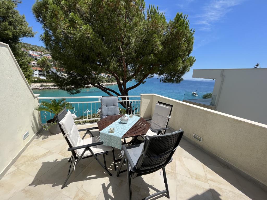 Apartmani su na južnoj strani otoka Čiova u najvećoj uvali Mavarčica. Kuća je s velikom uređenom okućnicom i puno zelenila, stvarno udaljena 10 metara od mora, s otvorenim pogledom na otoke Brač, Šoltu i Hvar. Apartmani su komforni i moderno opremljeni svi s prostranim terasama i jedinstvenim pogledom na navedene otoke i samu uvalu. Kuća na parceli od 900 metara četvornih pruža Vam potpuni komfor i i privatnost jer je od susjednih kuća zaštićena visokom živicom i stablima stoljetnih maslina lovora i palmi. Za svaki apartman rezervirano je i jedno natkriveno parking mjesto. Gosti na raspolaganju imaju i komin za roštilj, te dodatno i vanjske tuševe