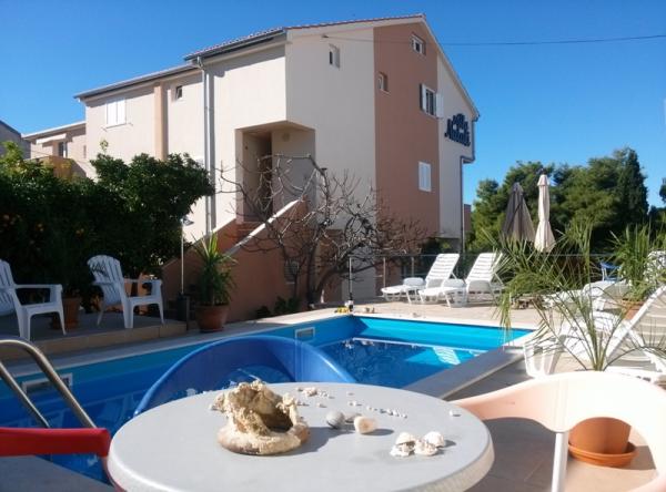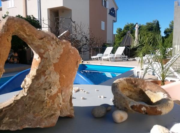 Moderno i kompletno opremljeni apartmani smješteni na zapadnoj strani otoka Čiova sa pripadajućim bazenom, terasom za sunčanje, ležaljkama, grillom, parkingom...omogućit će vam ugodan boravak. Prvi red smo do mora što vam pruža mogućnost čestog boravka na plaži koja ima dosta hladovine i dječje igralište. UNESCO grad Trogir je udaljen samo 2km ali imamo brodsku liniju koja vas vozi svakih 15 minuta do stare jezgra grada. Za sve koji vole kulturu i umjetnost ali vrijedi razgledati Trogir ali ako volite dobar zalogaj, tradicionalna Dalmatinska kuhinja u mnogim restoranima će vas oduševiti.