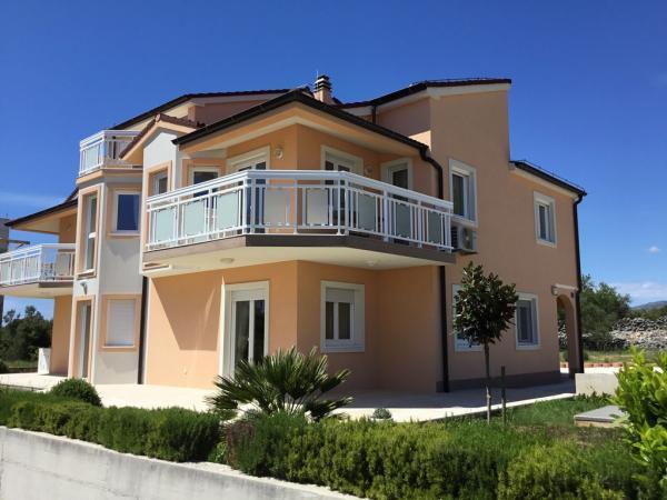 Villa Nikaraoni nalazi se na otoku Čiovu u blizini Trogira. Suvremeni i kompletno opremljeni apartmani u novoj kući sa svega 4 apartmana (prizemlje, kat i potkrovlje). Kuća je smještena na mirnom i sunčanom mjestu, sa puno zelenila u prostranom dvorištu ( 1000 m2). U dvorištu su parkirna mjesta kao i roštilj. Balkoni su prostrani i omogućuju pogled na more. Apartmani su opremljeni novim i modernim kuhinjama sa perilicom za posuđe, mikrovalnom pećnicom, prostranim hladnjakom, TV sa satelitskim programima, besplatnim WiFi, perilicom rublja...U cijenu apartmana su uključeni posteljina i ručnici ( ne za plažu) kao i završno čišćenje.