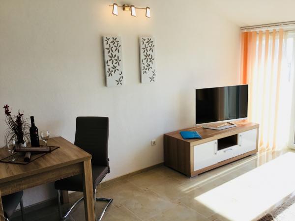 Turistička pristojba je uključena u cijenu.U blizini kuće (10-20 min hoda) se nalazi nekoliko restorana sa bogatom ponudom raznovrsnih dalmatinskih specijaliteta. Na pješčanoj plaži u Okrugu se nudi sport i zabava na vodi. Mogući su jednodnevni izleti na obližnje otoke i u nacionalne parkove. U blizini se nalazi i ronilački centar. Do Trogira plove brodice svakih 15-30 min u ljetnim mjesecima. Od Trogira do Splita plovi nekoliko puta dnevno brod (Bura Line).