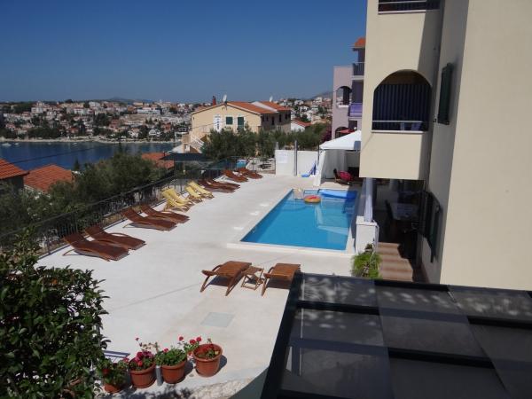Apartmani Zora ugodno opremljeni smještaj nalazi su na sunčanoj južnoj strani poluotoka Čiovo, u mirnoj uvali Movarštica, s lokacijom apartmana gdje je cijeli arhipelag na dlanu. Sa terasa svih apartmana uživajte u pogledu na trogirski arhipelag otoke Šolta, Drvenik... Trogir je povezan sa svim većim hrvatskim i europskim gradovima odlično bilo zrakom, kopnom ili morem. Zračna luka Split udaljena je samo 6 km, grad Split 33 km, a od centra Trogira udaljeni smo 4 km, te od mora samo 250 m, što je još jedan dokaz naše dostupnosti te idealne lokacije. Ukoliko vas zanima da vaš odmor porovedete u mirnom mjestu kao što je Okrug Gornji, i uživate u čistom moru, ako volite prirodu koja je što je i nekad bila, uživate u dalmatinskoj kuhinji, ako volite sport i rekreaciju Apartmani Zora su odgovor na sve to !. Obitelj Jelaska želi vam ugodan boravak.