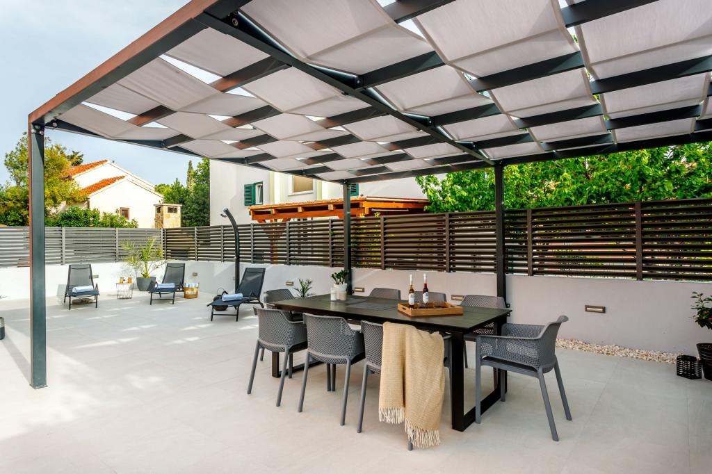 Villa Tango se nalazi u mjestu Okrug Gornji, pokraj Trogira, regija Srednja Dalmacija i udaljena je 100m od mora i 500m od centra. Veličina vile: 240 m². Villa ima privatni bazen i Jacuzzi sa ležaljkama za bezbrižno uživanje na suncu. Gosti na raspolaganju imaju roštilj i terasu sa stolom za jelo. Vila je opremljena kuhinjom, 8 spavaće sobe sa velikim krevetima za dvije osobe i tri dnevna boravka sa kaučima na razvlačenje za dvije osobe. Villa ima četiri kupaonice. U cijenu su uključena 2 električna skutera. Parkiranje je besplatno.
