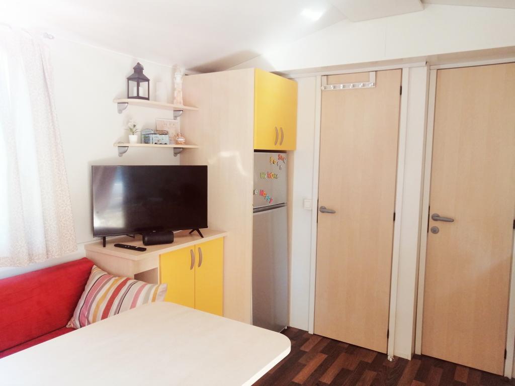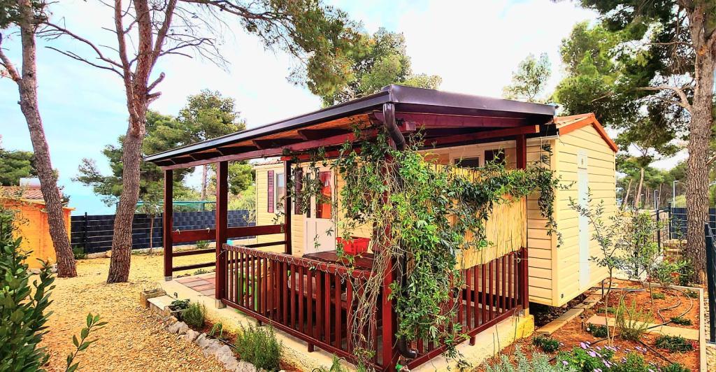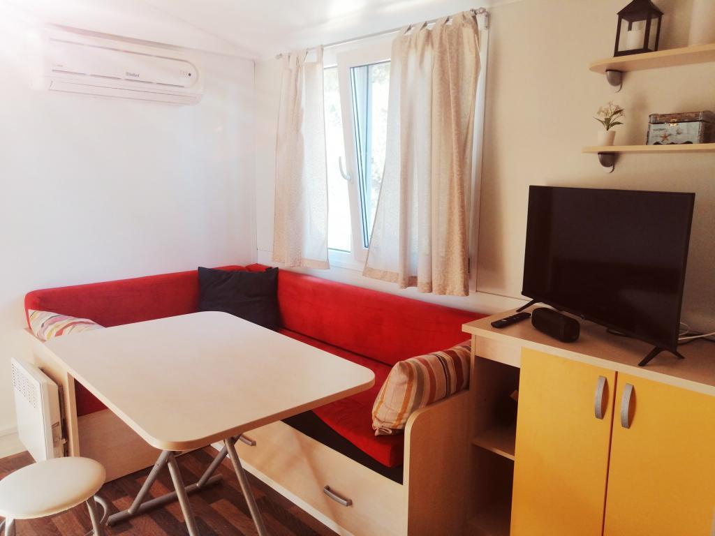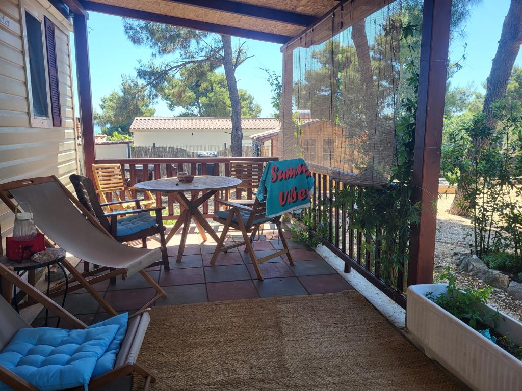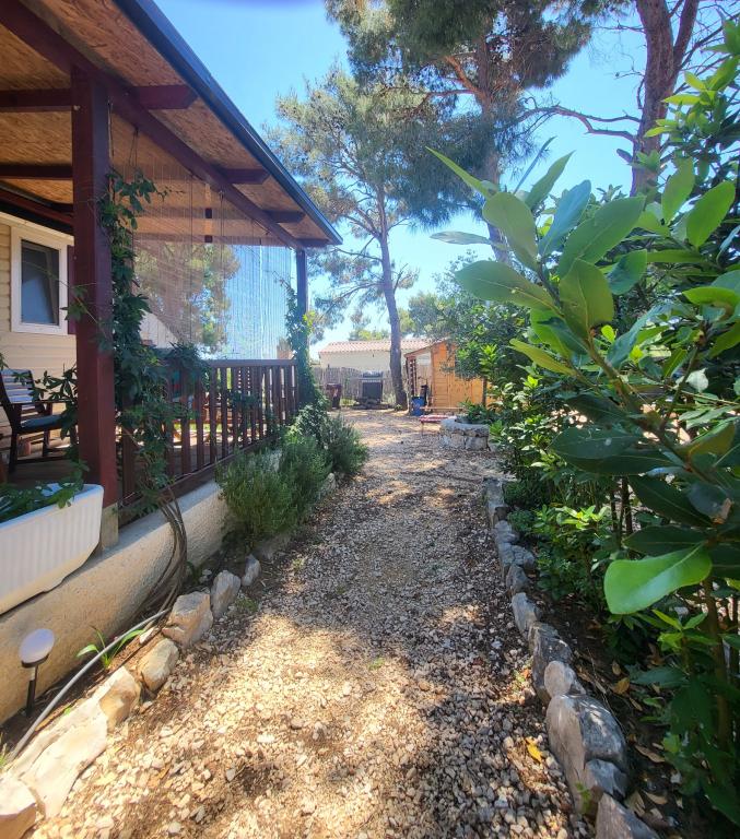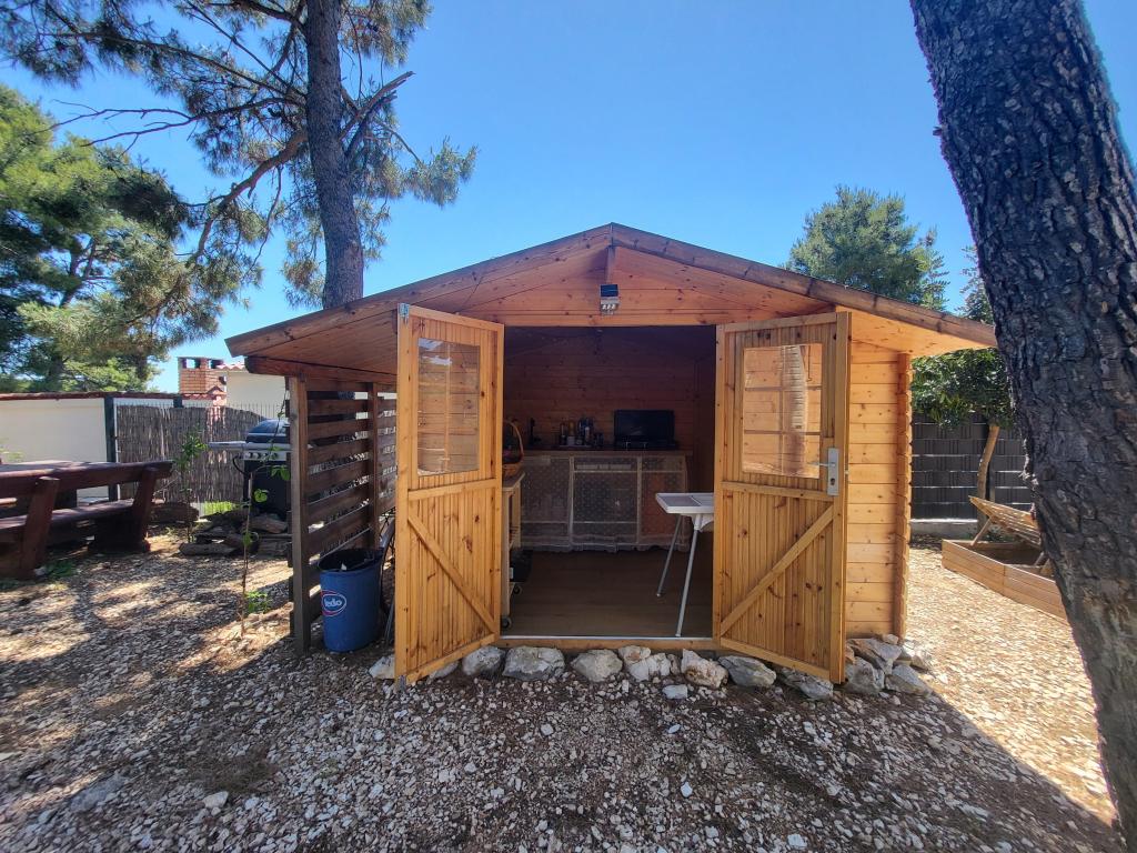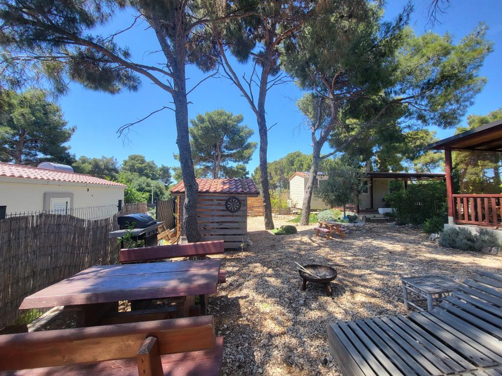 Kompletno opremljene 2 mobilne kuće smještene na južnom dijelu otoka Čiova. Kućice se mogu unajmiti posebno ili zajedno. Kapacitet smještaja jedne kućice su 4 osobe. Kućica ima dvije spavaće sobe. Jedna soba s bračnim krevetom i jedna s dva odvojena kreveta. Mobilne kućice se nalaze u blizini plaže Labadusa gdje se nalazi kamp i 3 restorana i beach club. Plaža je udaljena na svega 3 minute hoda, dok možete birati i plažice na osami ili svoju stijenu gdje vas nitko ne vidi. Mobilne kućice su opremljene sa svim sadržajima potrebnim za ugodan boravak, uz tv je dostupan Netflix i hbo max. Ljetna kuhinja i plinski roštilj su također dostupni, kao i ležaljke. Solarni vanjski tuš vam olakšava dolazak s plaze. Parking je besplatan i u sklopu objekta.