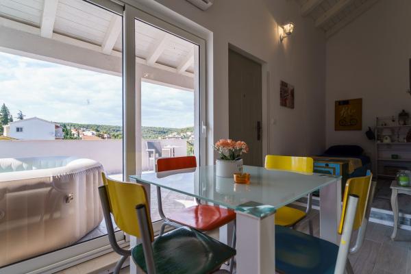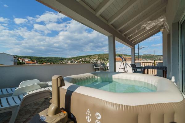 Boravili smo deset dana i naprosto smo poželjeli još toliko. Apartman je predivan. Opremljen do svih detalja. Sve sto nam je bilo potrebno je apartman sadržavao. Bas je bogato opremljen. Djeci je bilo super sto je sadržavao kajake i dasku za surfanje. Također je vodeni park blizu i plaza savršena za djecu. Jacuzzi na terasi je savršen za večernje sate i odmor nakon mora i sunca. Vlasnici su naprosto divni ljudi. Toliko ljubazni, pažljivi i susretljivi. Uvijek spremni pomoći. Veliko hvala i sve pohvale. Toplo preporučujemo ovaj apartman svima koji traže odmor, osobito obiteljima s djecom. Ovako divan apartman i ovako dobro vlasnike nećete nigdje drugdje pronaći. Mi smo oduševljeni.