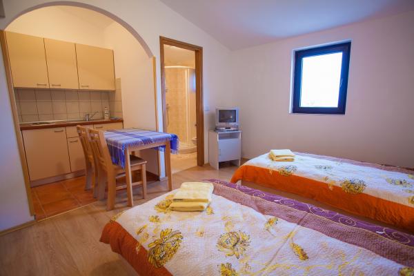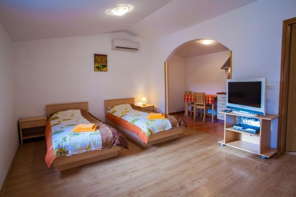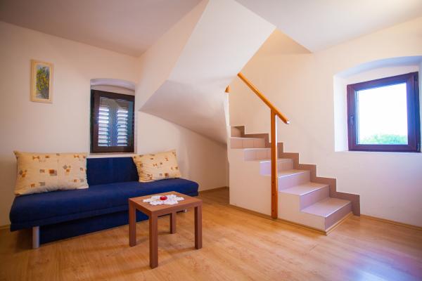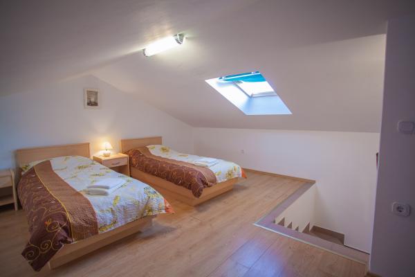 Prekrasna kuća u selu Orlec udaljena 10 km od grada Cresa, suvremeno opremljena sa 4 apartmana i velikom livadom, omogućuje vam privatnost i mir. Svaki apartman se sastoji od kuhinje, kupatila i dva kreveta sa mogućnošću postavljanja i pomoćnog ležaja. Apartmani su kompletno opremljeni (posteljina, ručnici, kuhinjske krpe, pribor za jelo...) Kuća također raspolaže sa velikim privatnim parkingom a s obzirom da se mjesto nalazi na 300m nadmorske visine, istraživanje možete započeti starim puteljcima kroz maslinike i makiju, automobilom ili turističkim brodicama. More i plaža udaljeni su svega 2 km, šljunčana prirodna plaža te čisto more pružaju nezaboravljivo iskustvo za vaše najmlađe, a nezamjenjiv odmor za odrasle.