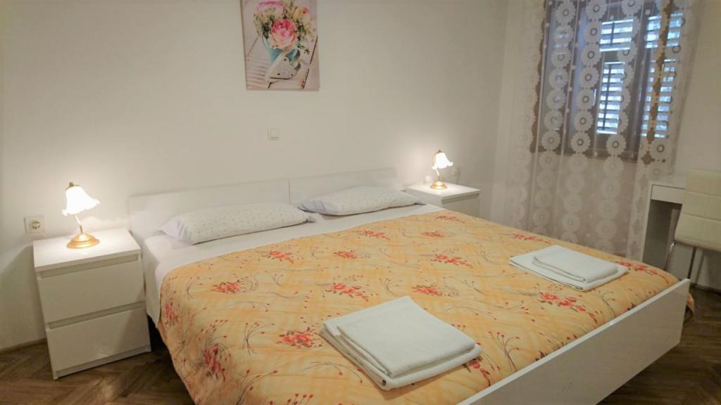 Naši apartmani smješteni su u srcu stare gradske jezgre, gdje su restorani, kafići, trgovine i kulturne znamenitosti nadohvat ruke. Plaža je udaljena oko 15 minuta hoda, a luka i autobusni kolodvor također su u neposrednoj blizini. Za goste je osiguran besplatni privatni parking,udaljen oko 250m od apartmana. apartman A5 – prostran apartman za 5 osoba na 2. katu i potkrovlju, klimatiziran, s Wi-Fi, SAT TV-om, kupatilom s WC-om na drugom katu i dodatnim WC-om u potkrovlju, idealan za obitelji ili grupe. apartman A2 – udoban apartman za 2 osobe na 1. katu, klimatiziran, s Wi-Fi i SAT TV-om, savršen za parove ili solo putnike. apartman Studio – prizemlje, za 2 osobe, Wi-Fi i SAT TV, praktičan smještaj , idealan za parove i solo putnike. Uživajte u spoju povijesnog šarma i moderne udobnosti, sa svime što vam treba nadohvat ruke.