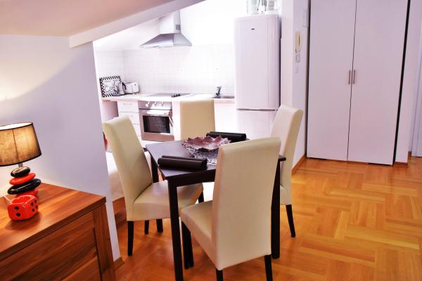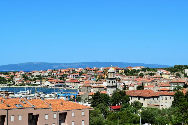 Apartmani Lovrić smješteni su na mirnoj lokaciji, 200 metara od šljunčane plaže. Stari dio grada nalazi se na 400 metara. Svi apartmani uključuju klima-uređaj, bežični pristup internetu i balkon. Sve su jedinice uređene i namještene u šarenim bojama. Dnevni boravak sadrži TV ravnog ekrana i prostor za sjedenje, a kuhinja je potpuno opremljena i obuhvaća blagovaonicu. Na raspolaganju je vlastita kupaonica s tušem i WC-om. Objekt je udaljen 50 metara od trgovine prehrambenih proizvoda, kafića i restorana te 400 metara od tržnice sa svježom hranom. Sportski sadržaji poput teniskih i odbojkaških igrališta nalaze se na 100 metara. Na raspolaganju je besplatno parkiralište u okviru objekta. Apartmani su smješteni 350 metara od autobusne postaje i nekoliko minuta hoda od lokalne ACI marine. Trajektna luka u Meragu udaljena je 15 km, a iz nje plove linije do Krka i okolnih otoka.