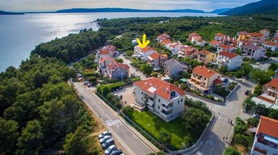 Apartmani se nalaze na odličnoj lokaciji, u blizini Hotela, u mirnom predjelu Cresa Melin II 30, drugi red do mora. Svaka smještajna jedinica je opremljena, ima vlastiti parking i pogled na more. Plaža je udaljena manje od minute hoda.