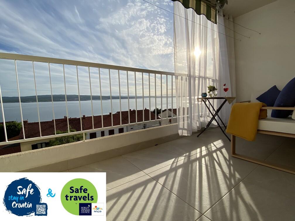 Dragi gosti, Novouređeni apartman Blue View (4*) pruža zadivljujući pogled na otok Krk i Jadransko more. Stan se nalazi u Crikvenici, 300m od mora, na drugom katu zgrade (bez lifta), sa sigurnim ulazom i besplatnim javnim uličnim parkingom. Privatno parkirno mjesto također je dostupno na zahtjev (plaća se). Apartman Blue View (4*) veličine je 70m2 i nudi smještaj za do pet osoba. Apartman nudi balkon s pogledom na more s dnevnim boravkom, klima uređaj, Wi-Fi, dvije spavaće sobe, kupaonicu s tuš kabinom u talijanskom stilu i WC. Tu je i dodatni odvojeni WC. Prostrana dnevna soba opremljena je velikim Android TV-om. Kuhinja je potpuno opremljena hladnjakom / zamrzivačem, perilicom rublja, perilicom posuđa, štednjakom, kuhalom za vodu i aparatom za filter kavu. Dva dućana se nalaze točno nasuprot zgrade. Spar supermarket udaljen je 5 minuta pješice.