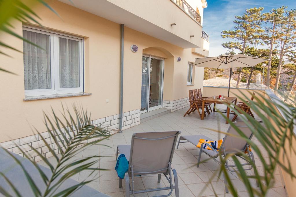 Kompletno i suvremeno opremljen apartman u u mirnom dijelu poznatog ljetovališta Crikvenica. Apartman ima veliku natkrivenu terasu i roštilj za ugodna druženja. Gosti se mogu opustiti u velikom bazenu (7mx3m) koji je na korištenje samo njima. Apartman ima dvije spavaće sobe, kupaonica s wc-om, dnevni boravkom, blagovaonom, kuhinja.