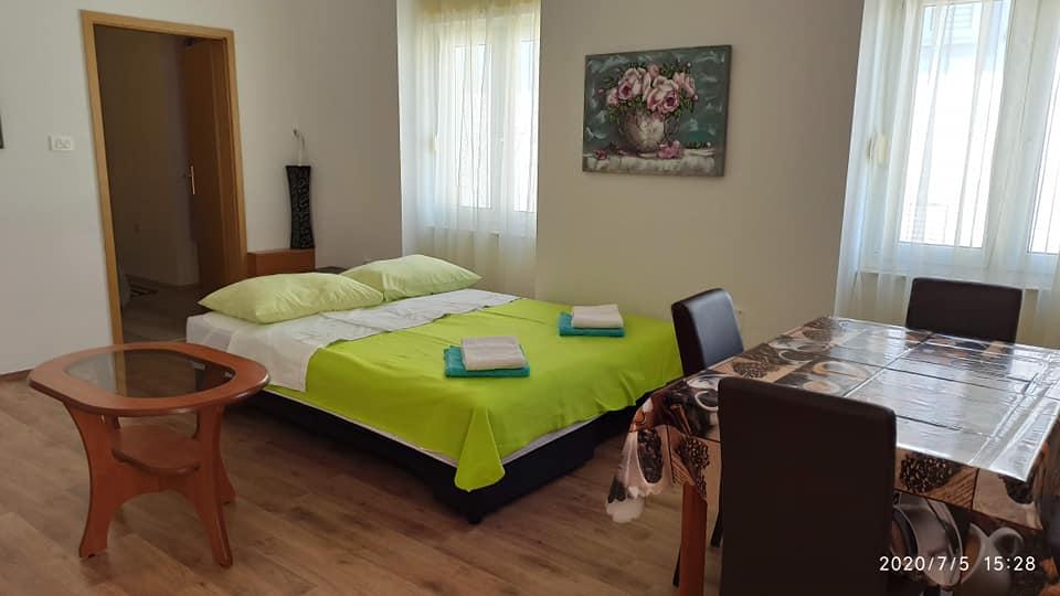 Apartman se nalazi u blizini plaže (5-10 minuta hoda) i nedaleko samoga centra (5 minuta hoda). Apartman ima veliku terasu te osigurano besplatno parkirno mjesto Pušenje je dozvoljeno na terasi. Apartman se sastoji od 1 spavaće sobe, 1 kupaone, kuhinje i dnevnog boravka za ukupno 4 osobe