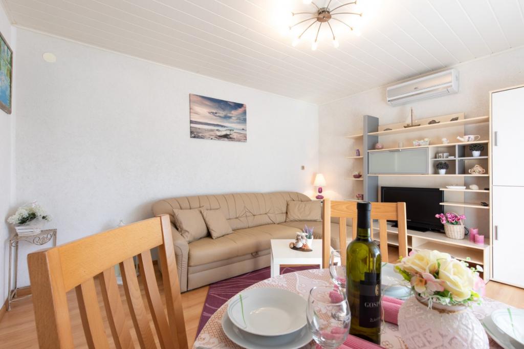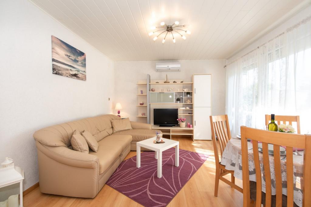Novouređeni apartman u prizemlju obiteljske kuće sa prostranim dvoristem i privatnim parkingom. Udaljenost do plaze je 3 min hoda a isto tako i do samog centra Crikvenice gdje se odvijaju sva događanja tokom ljeta. Apartman je opremljen sa klimom, svim potrebnim kućanskim aparatima, wi-fi, satelit, a u dvoristu se nalazi grill. Dvoriste je ograđeno i veliko sa puno hladovine sta bi posebno odgovaralo kucnim ljubimcima koji su svakako dobrodosli.