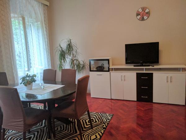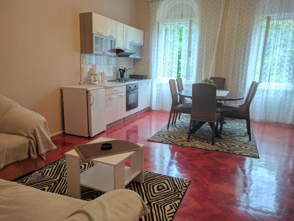 Apartman se nalazi na 2. katu u kući, koja je u samom centru Crikvenice, 1. red do mora. Apartman je veličine 80 metara kvadratnih. Plaža je udaljena 30m od apartmana. Sastoji se od hodnika, 2 spavaće sobe s balkonom, kupaonice, te kuhinje s dnevnim boravkom. U obje spavaće sobe je bračni krevet na koji stanu 4 osobe. Sofu u dnevnom boravku je moguće rastegnuti i na njoj mogu spavati još 2 osobe. Moguće je smjestiti 6 - 7 osoba. (moguće korištenje još jednog dodatnog ležaja).