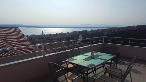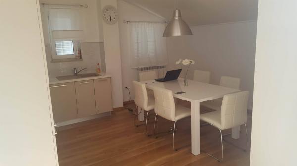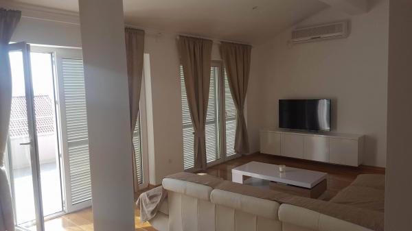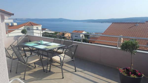 Moderno opremljeni apartmani. . Prva godina izdavanja. . Stan ima svoju terasu s pogledom na more. Dvije kupaonice, 3 spavace sobe s televizijom, besplatan wifi. . Miran dio grada. . Obiteljska kuca. . 6 min pjesice do centra grada i plaze. .
