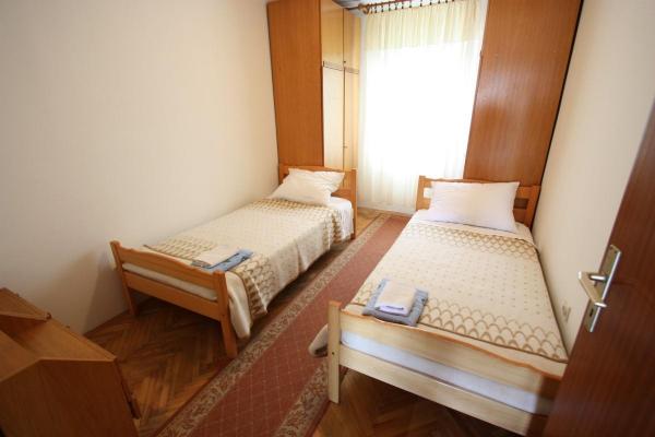 Apartman se nalazi u mirnom dijelu grada Crikvenice, u prizemlju stambene zgrade s pogledom na more. Udaljen je 5 minuta hoda do plaže i 10 minuta do centra grada. Apartman je 70m2 sa dvije spavaće sobe, dnevnim boravkom, kuhinjom s blagovaonicom, kupaonicom i dva balkona. U dnevnom boravku nalaze se dva pomoćna ležaja. Potpuno opremljena kuhinja sa dodatnim kuhinjskim aparatima, kao što su: kuhalo za vodu, mikrovalna pećnica, toster, kafe aparat. Apartman sadrži: SAT/TV, klima uređaj, internet i parkirno mjesto. U apartman su dobro došli i vaši kućni ljubimci (manje pasmine; dodatnih 5€ po danu). Moguće kontaktirati putem e-maila: vesnavolley@gmail. com