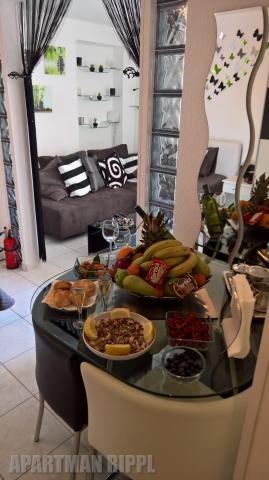 Turistička pristojba je uključena u cijenu.U našem studio/apartmanu očekuje Vas ugodno malo slatko iznenađenje kao znak dobrodošlice i želje za ugodnim boravkom, kao i mali znak pažnje u obliku suvenira obilježja našeg Grada. Također u studio/apartmanu nudimo Vam sve podatke i brošure za Vaše slobodno vrijeme i zabavu gdje, kada i kamo, te je na Vama da odlučite i izaberete. U ponudi Vam nudimo kompletno opremu i materijal za vanjski grill. AKCIJA: U periodu od 01. 10. 2017. -31. 05. 2018. i od 01. 10. 2018. -31. 05. 2019. Za boravak od 10 dana u predsezoni i posezoni cijena se umanjuje za 10%. Za boravak od 20 dan u predsezoni i posezoni cijena se umanjuje za 15% U periodu od 13. 01. -30. 04. 2018. za boravak od 8 dana nudimo 7 1 GRATIS ili za boravak od 15 dana nudimo 14 1