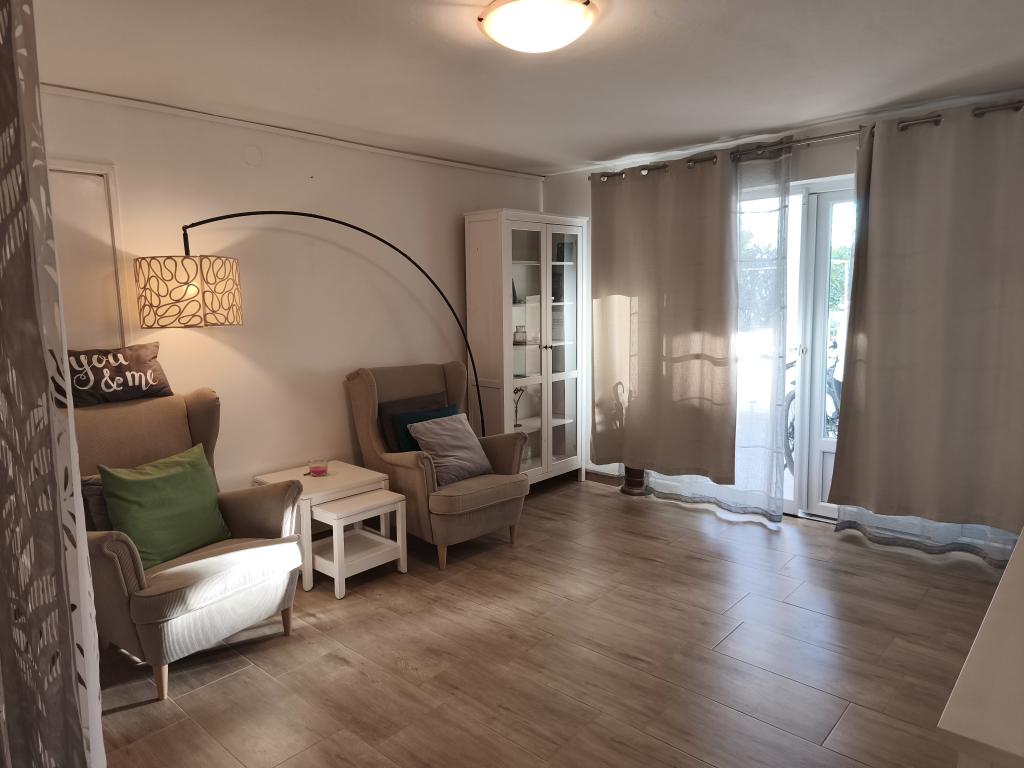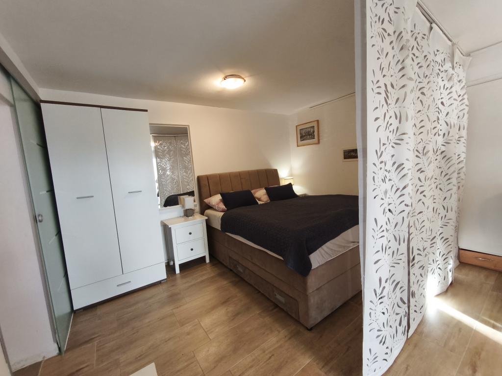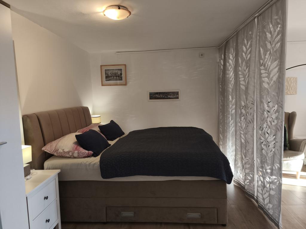 Studio apartman, prvi red do mora. Klima, parking Wi-FI. Plaža, trgovina i restorani u krugu od 100 metara. Autobusni kolodvor i centar grada udaljeni 3-5 minuta hoda.