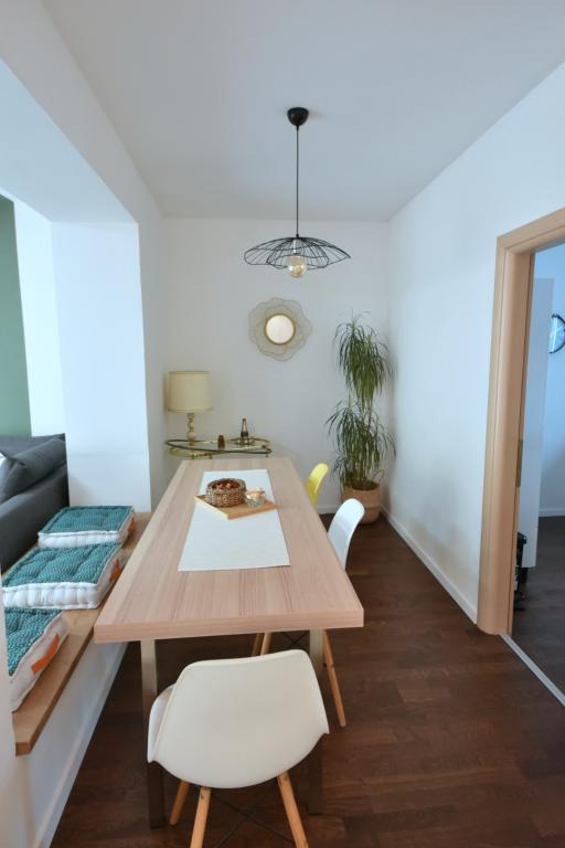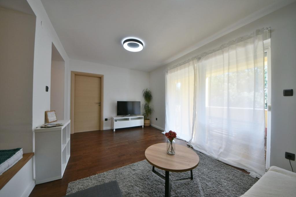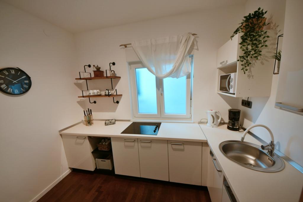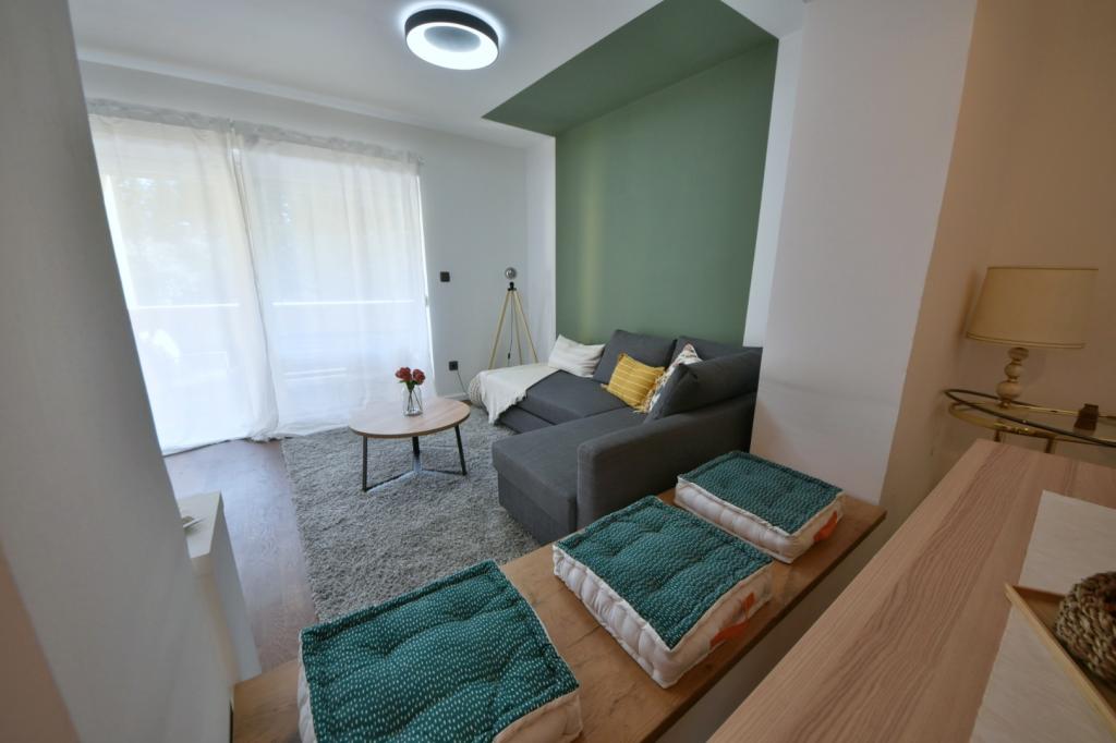 Lijepo uređen i ugodan apartman. Ima sve što vam može biti potrebno - dovoljno posuđa, perilicu rublja, sušilo za odjeću, glačalo, fen, dovoljno ručnika. Sve je u blizini i lako dostupno. Trgovine i tržnica su na 5 minuta hoda. Brojni kafići i restorani se nalaze odmah ispod. Plaža s mješavinom sitnog i krupnijeg kamenja je odmah preko puta. Pješčana je na 5 minuta hoda. Ono što nekome može biti problem je penjanje na 3. kat i povremena buka u kasnim satima. Sve u svemu, mi smo bili vrlo zadovoljni i opet bismo se vratili (obitelj s dvoje djece)