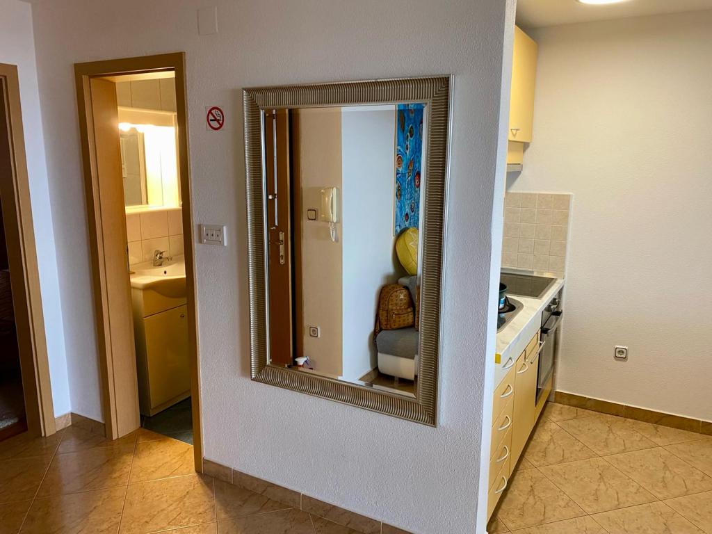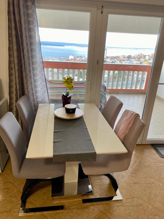 Apartman veličine 62m2 je potpuno opremljen sa svim sto je potrebno za jedan ugodan boravak :). Velika terasa sa prekrasnim pogledom. Perilica za rublje Vam stoji na raspolaganju. Apartman je etažni, sa kupaonom, dva odvojena toaleta, dvije spavaće sobe, dnevnim boravkom i blagovaonom. Nadkriveno privatno parkirno mjesto je u sklopu apartmana i Vaš automobil je zaštićen od sunca i elementarnih nepogoda. Sa terase se pruža prekrasan pogled na plavetnilo i na otoke Kvarnera. Apartman se nalazi u Benićima koji glasi za najbolji dio grada Crikvenica. Centar je udaljen nekih 12 minuta hoda i najbliža plaza 450m.
