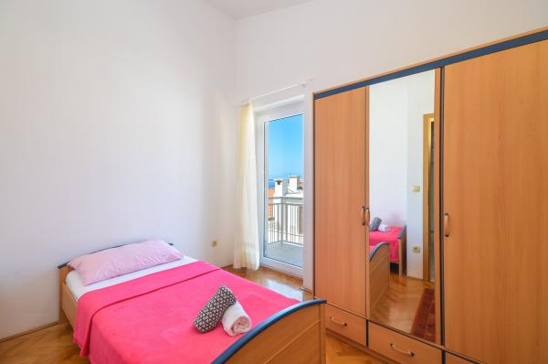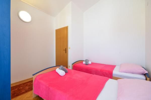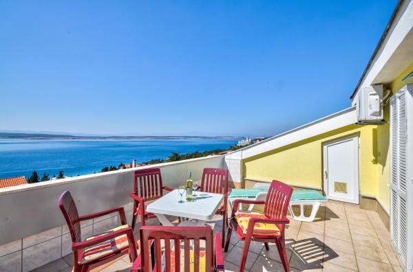 Apartman Tanja nalazi se na ulazu Crikvenice te je smješten na vrhu stambene zgrade s velikom terasom i odličnim panoramskim pogledom na more. Od plaže je udaljen svega 350m, a od centra grada 650m. U neposrednoj blizini se nalazi poznati supermarket „Lidl“, te trgovački centar „Duga Mall“. Restorani koji nude brze i slasne zalogaje su odmah uz plažu. Apartman ima dvije odvojene spavaće sobe, jedna s bračnim krevetom i jedna s dva odvojena ležaja. U kupaoni je velika masažna kada, perilica rublja te umivaonik s toaletnim ormarićem. Kuhinja je opremljena u potpunosti sa priborom, frižider ima zamrzivač, a tu je i kuhalo za vodu, pećnica, štednjak na struju te caffe aparat. U istoj prostoriji nalazi se blagovaona i kutna garnitura na razvlačenje za dvije osobe. Za doručak, ili za opuštajuću večeru uz čašu vina, tu je terasa s garniturom za 5 osobe, s koje se pruža pogled na more. Uz klima uređaj, wi-fi pristup, Tvsat te osiguran parking u garaži, apartman osigurava ugodan boravak.
