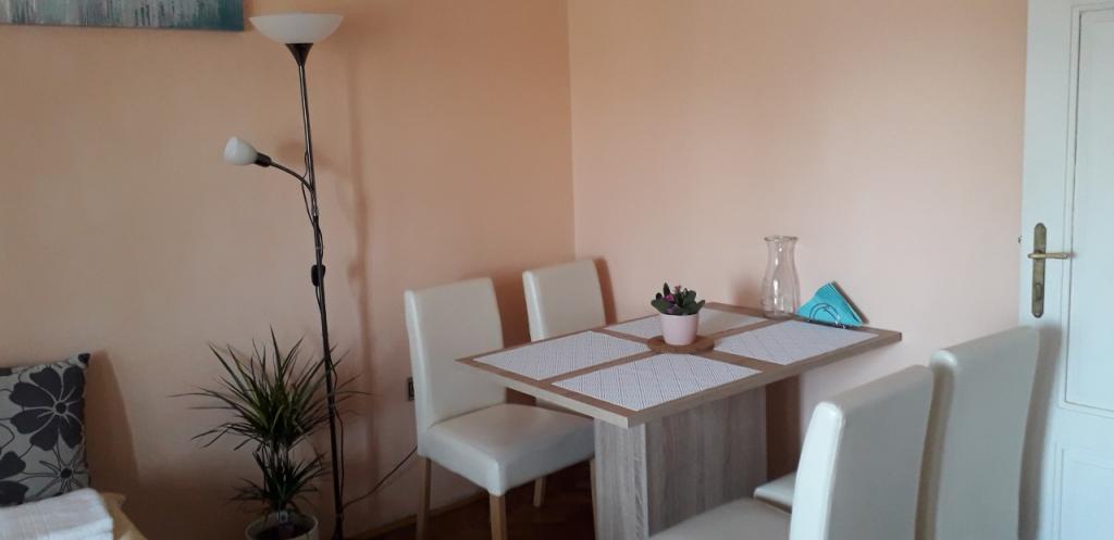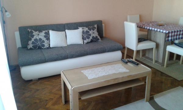 Apartman se nalazi u cenru Crikvenice, 300 m udaljenosti od prve plaže. Sastoji se od spavaće sobe sa bračnim ležajem, dnevnim boravkom sa pomoćnim ležajem, potpuno opremljene kuhinje, kupaonice sa perilicom, balkonom, terasom iza kuće i gradskim parkingom, , Na raspolaganju je besplatan wi fi internet, te gradski parking. Apartman ima klima uređaj i grijanje. Apartman je udaljen 300 m od prve plaže, 20 m od prvog supermarketa, 300 m od glavnog gradskog trga, gdje se ljeti organiziraju događanja - folklora, koncerata, fešte, ribarske noći...Također je udaljena 300 m od apartmana šetnica duž crikvničke obale Balustrada, gdje su smještene ostale plaže u nizu. U apartmanu nisu dozvoljeni kućni ljubimci i nemamo gril.