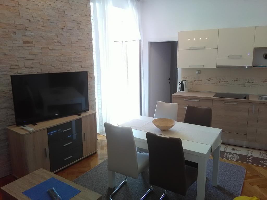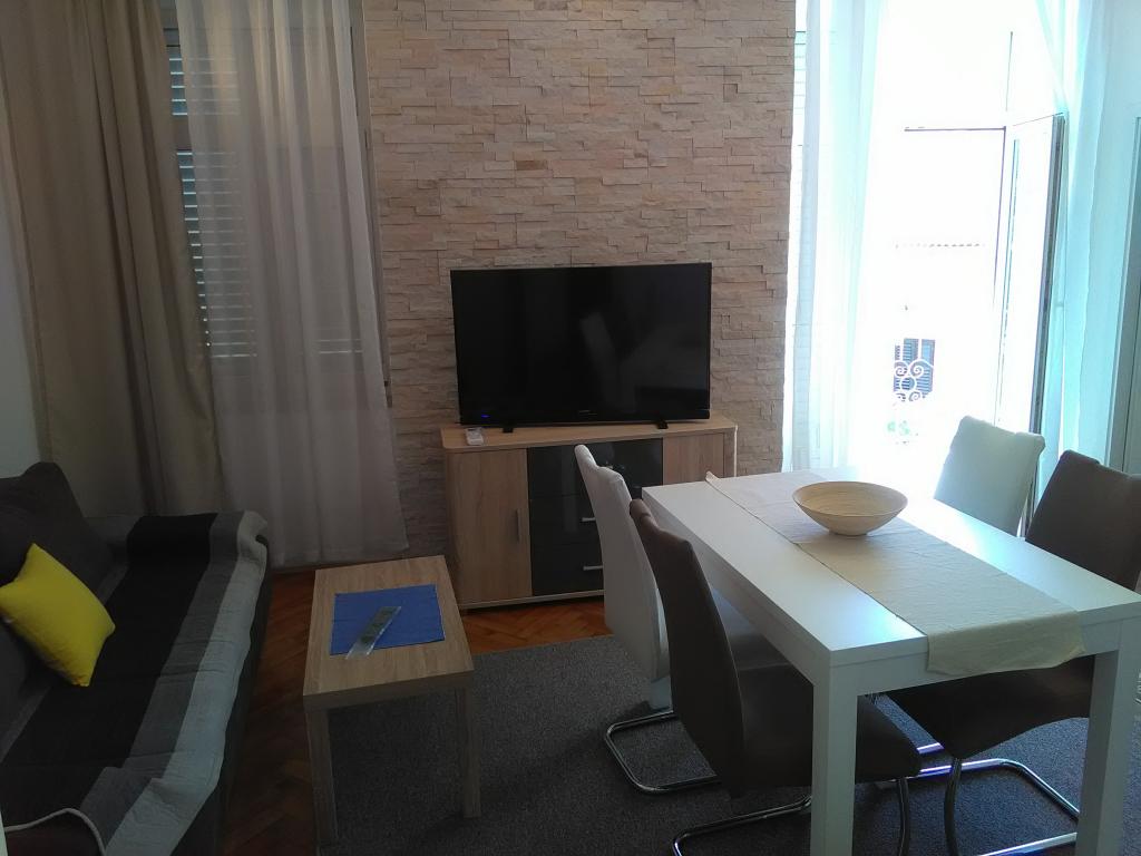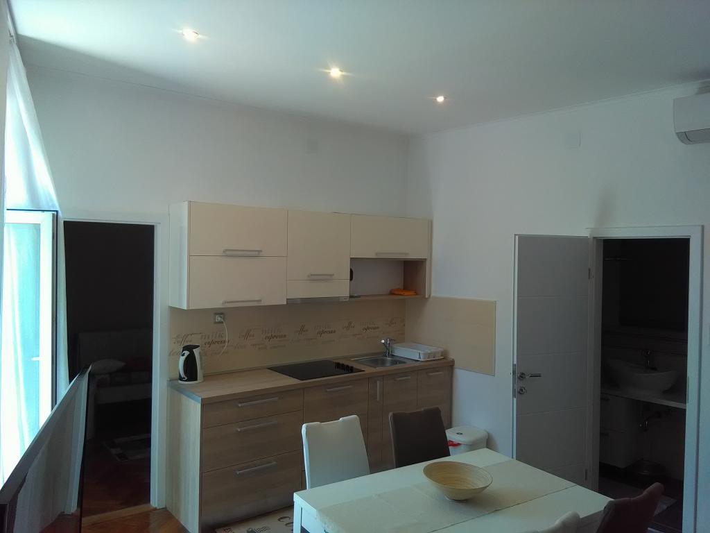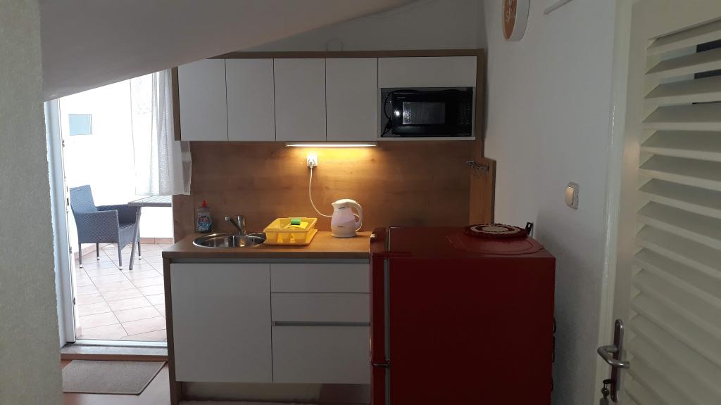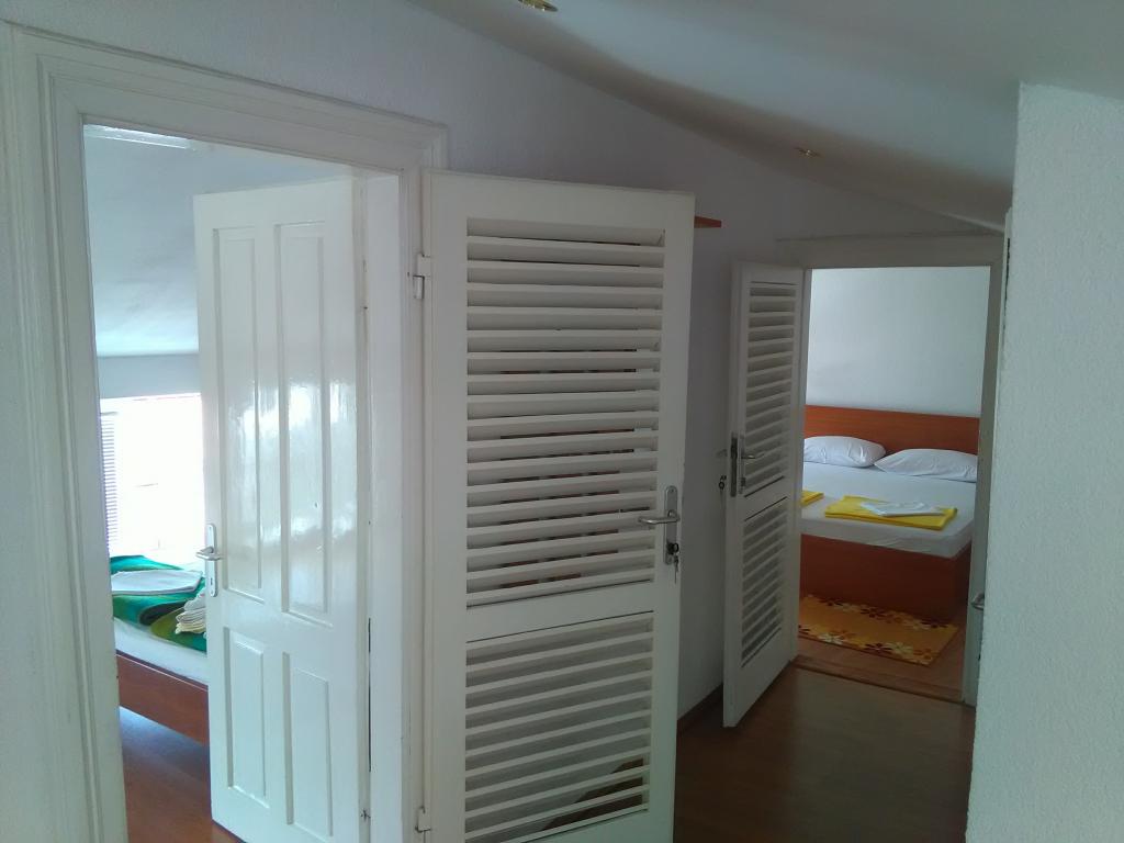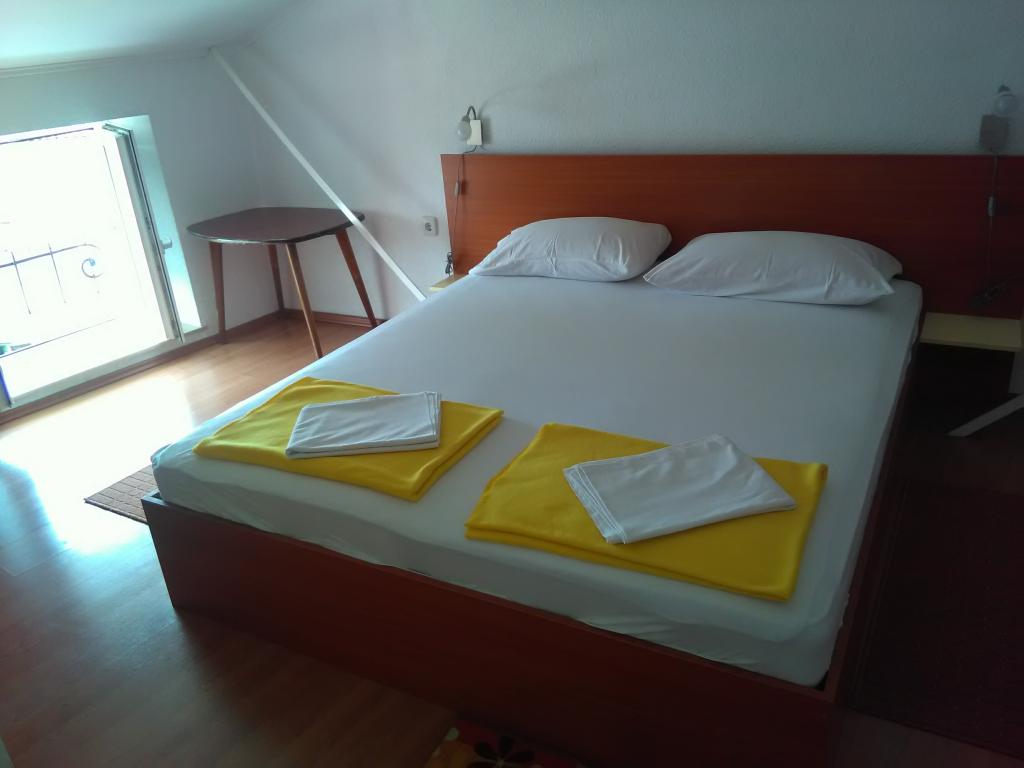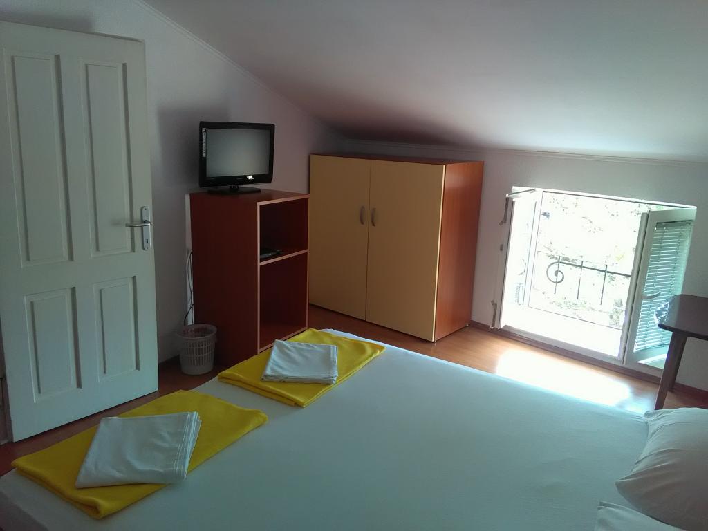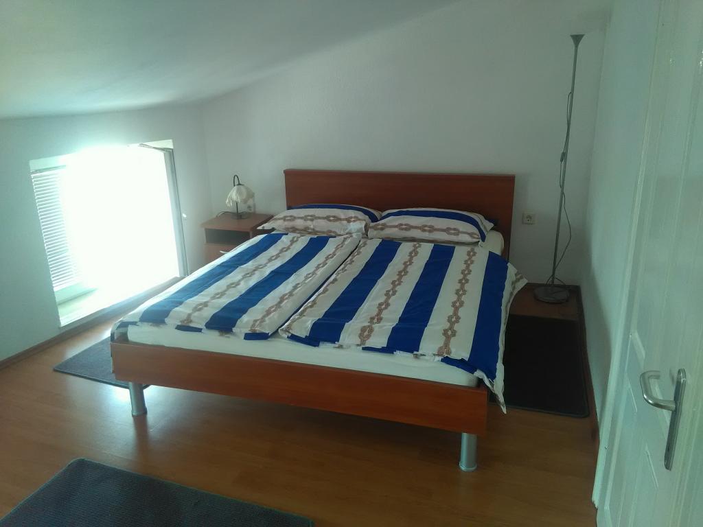 Potpuno obnovljen apartman, modernog dizajna s prekrasnim pogledom na centar grada. Apartman za 1-4 osobe (40m²). Spavaća soba, dnevni boravak s kuhinjom, kupaonica, balkon, TV, wi-fi, klima uređaj. Najbolje za 2 odrasle osobe i 2-4 djece. - udaljenost od plaže: 1 min - udaljenost od restorana: ispred kuće - udaljenost do marketa: 2 min - gradski parking je udaljen 50 m od apartmana i košta 6 eur po danu, Cijelo potkrovlje obiteljske kuće, dvije sobe, kuhinja, kupaonica, terasa, wifi, tv i klima uređaj. Prostor se nalazi na trećem katu i dostupan je samo stepenicama.